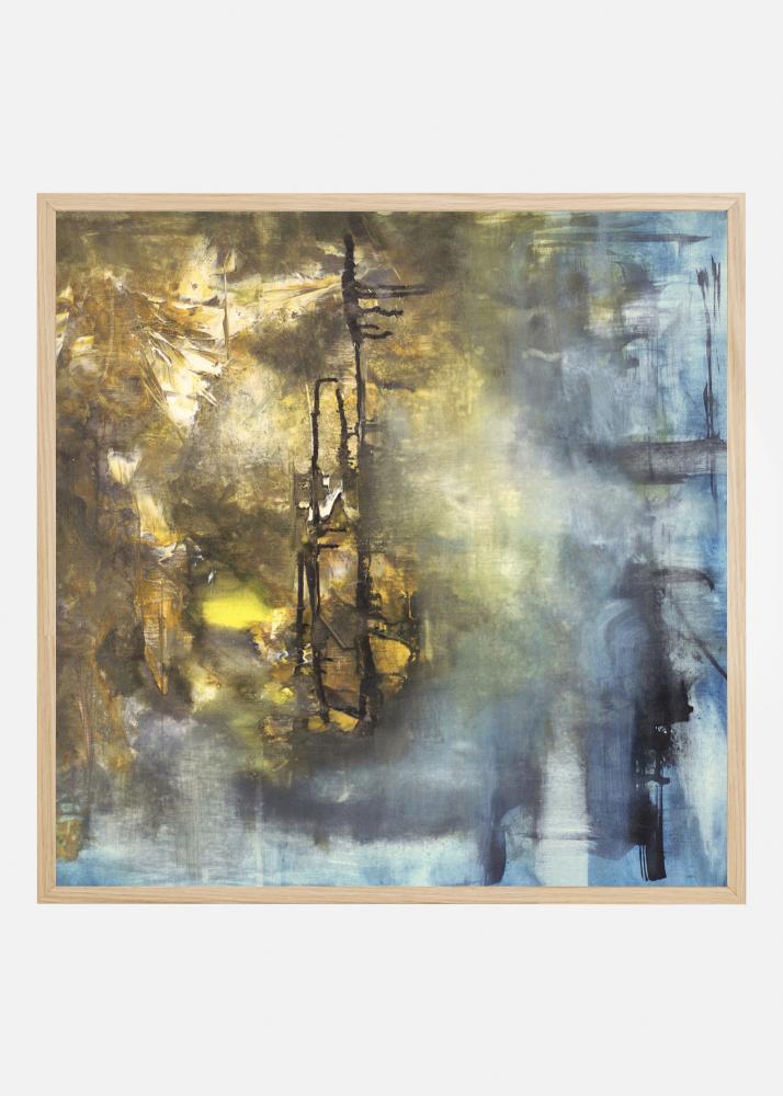 Abstraktne akrüülmaal kollase, sinise ja musta toonides, mille on loonud kunstnik Linn Westanbäck. Rõõmsalt elav plakat ruudukujulises formaadis, mida saab soodsalt kombineerida teiste Linn Westanbäcki teostega.