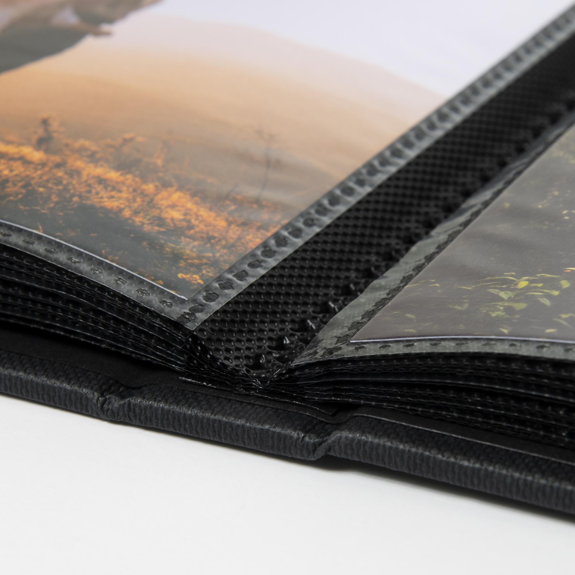 Albumil on mustad lehed, mis on valmistatud hapeteta paberist. Pildid paigutatakse praktilistesse fototaskutesse.