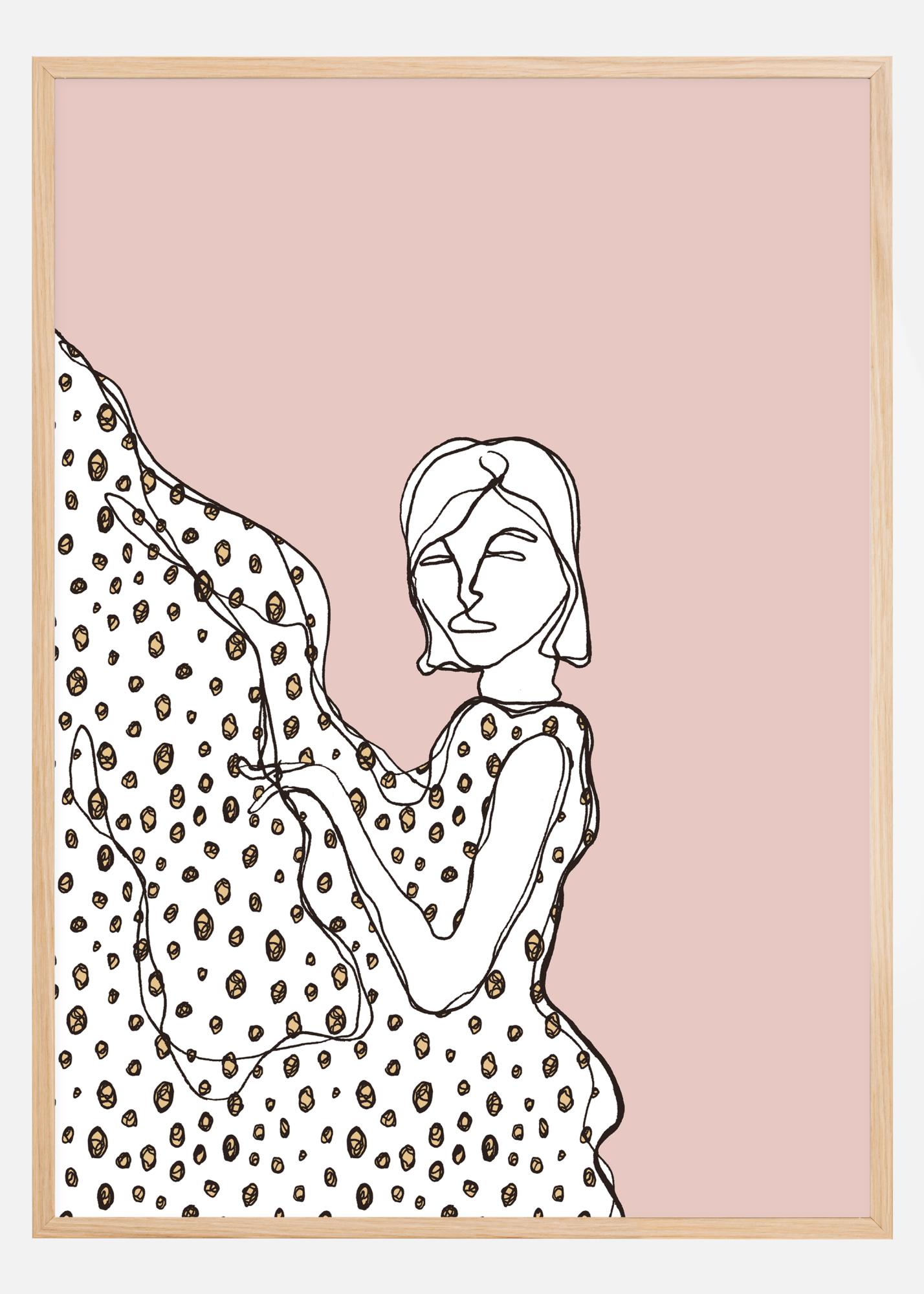Lihtne plakat skitseeritud tüdrukuga täpilises kleidis. Tüdruku jämedakoeline skitss loob liikumise, kui ta keerab oma kleidi üles. Lihtsad täpid paistavad silma kahvaturoosa pastelsetausta peal, mille ees ta seisab. Püüa tema pilk, kui ta sulle otsa vaatab.
