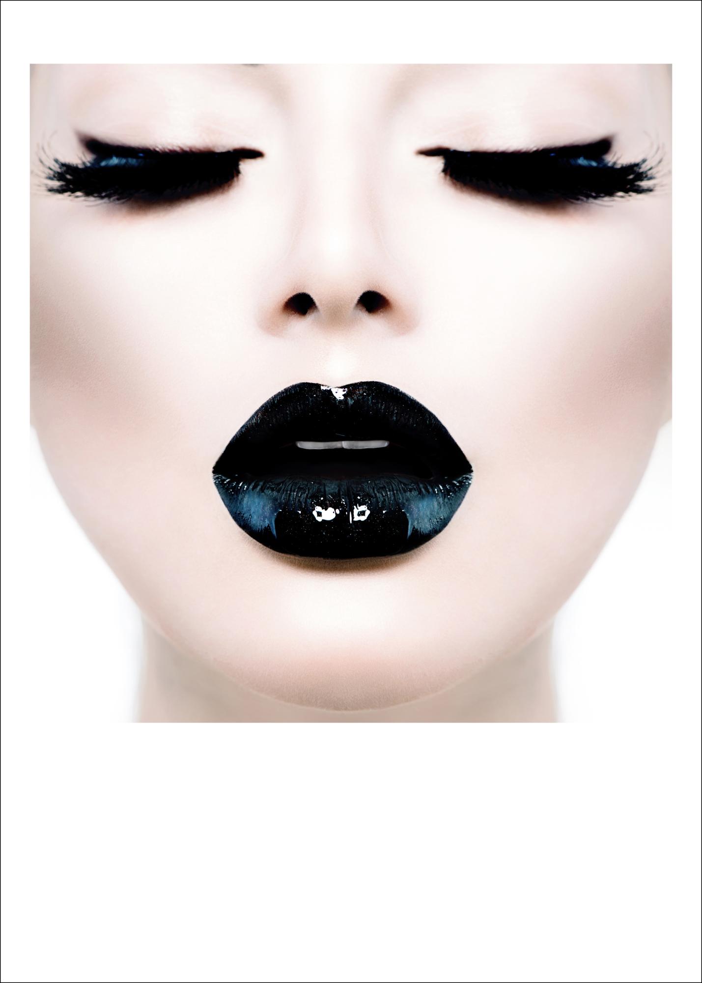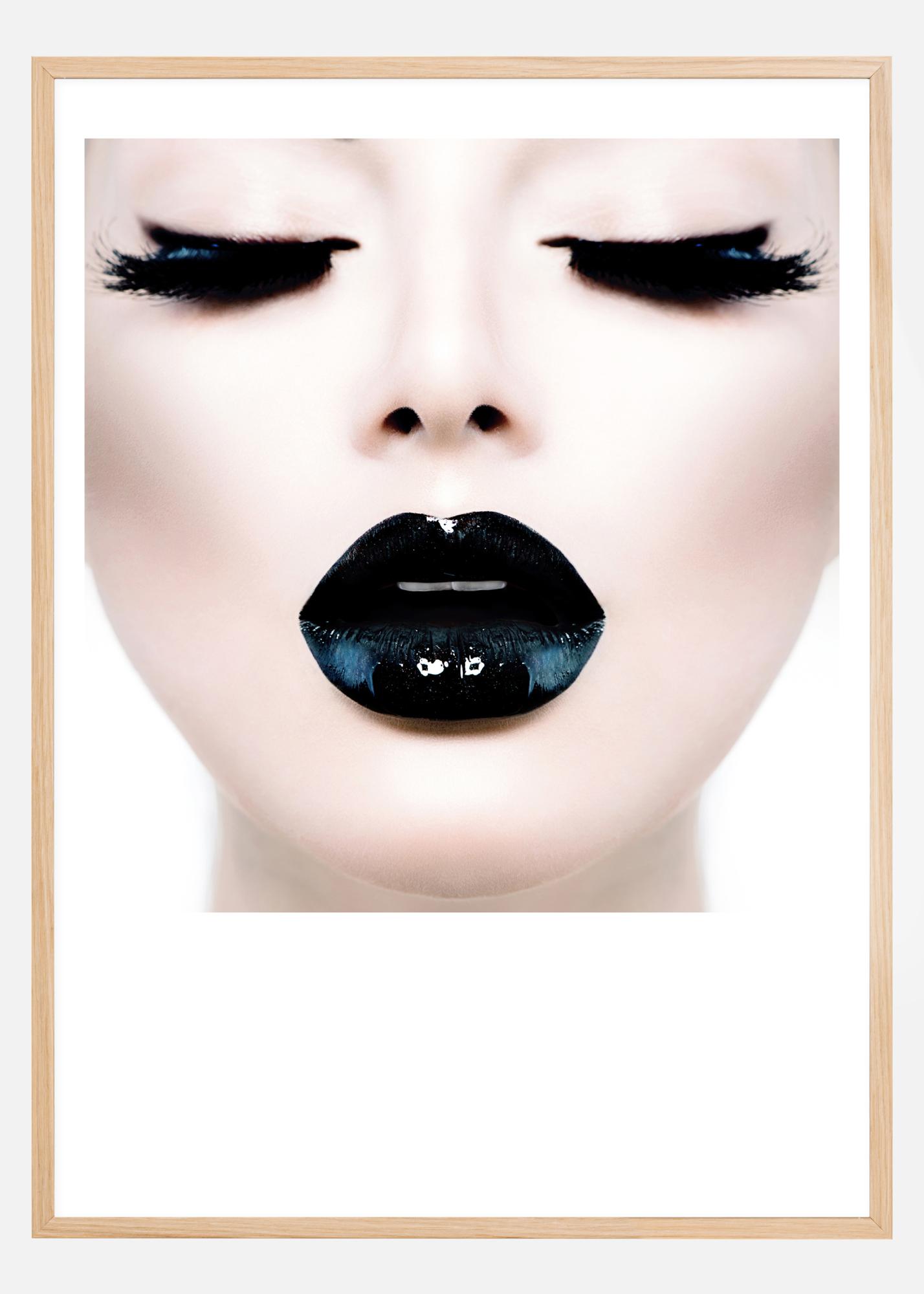 Imeilus, silmapaistev moekunstiposter! Mustad täidlased huuled ja paksud mustad ripsmed kohtuvad portselanvalge naha ja valge taustaga. Stiilne ja kontrastne poster, mida on lihtne kombineerida teiste lemmikutega suuremal galeriiseinal.