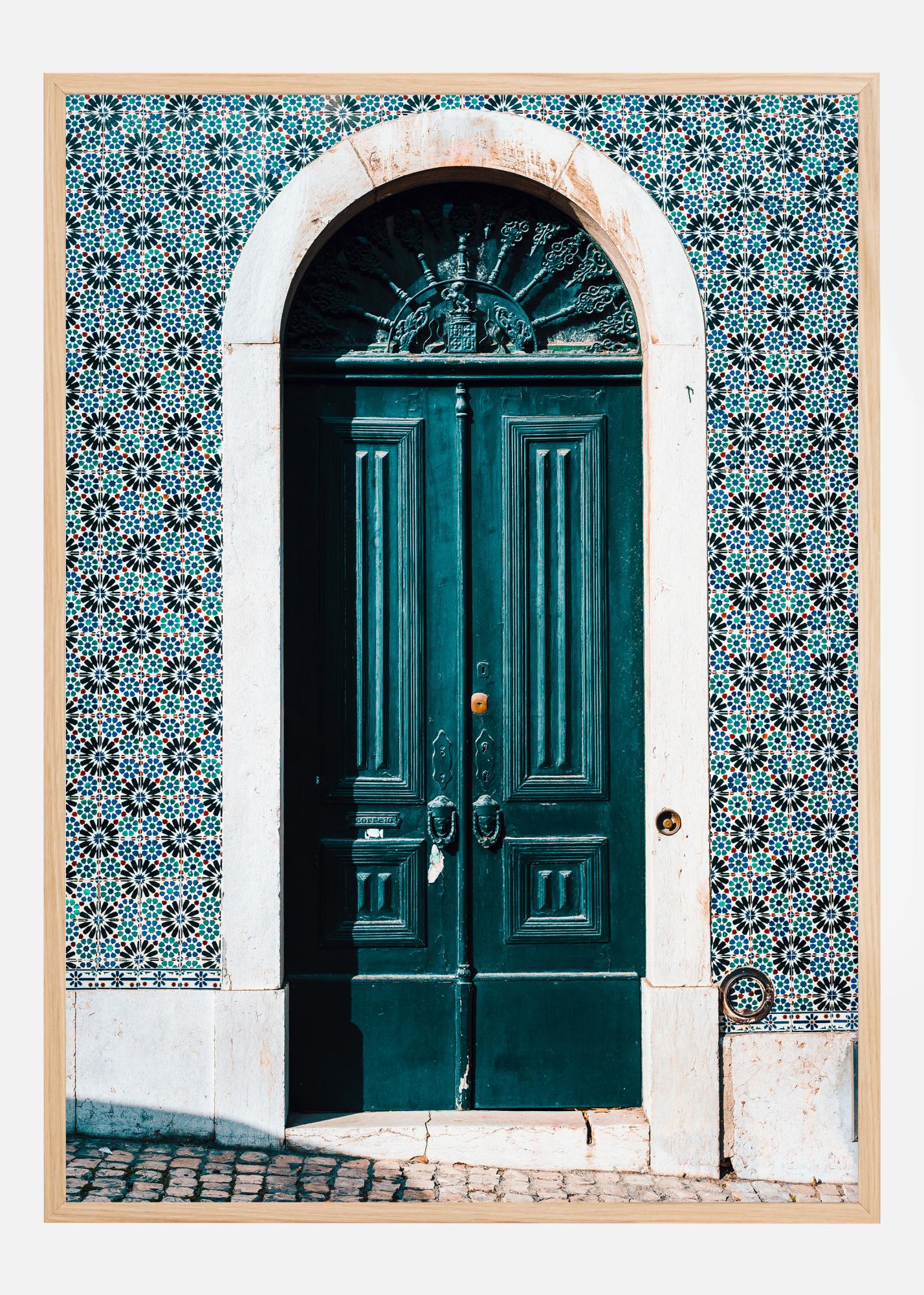 See stiilne plakat kujutab majesteetlikku rohelist ust, mis on kaunilt raamitud traditsiooniliste, detailirohkete siniste ja valgete plaatidega. Ukse klassikaline disain ja julge värv moodustavad kontrasti keerukate mustritega, luues tunde külalislahkusest ja kultuurilisest rikkusest. Pilt edastab tunde kutsuvast sissepääsust koju, mis on täidetud ajalooga ja iseloomuga.