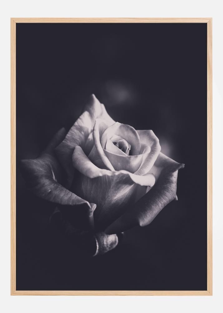 See rafineeritud plakat jäädvustab ilu olemuse selle kõige puhtamal kujul üheainsa halltoonides roosiga. Selle kroonlehed avanevad elegantselt väljapoole, luues sümmeetrilise ja köitva vormi, mis on nii delikaatne kui ka võimas. Pilt on sügavalt detailne, pehmete üleminekutega valgusest varjuni, mis rõhutavad roosi struktuuri loomulikku ilu.