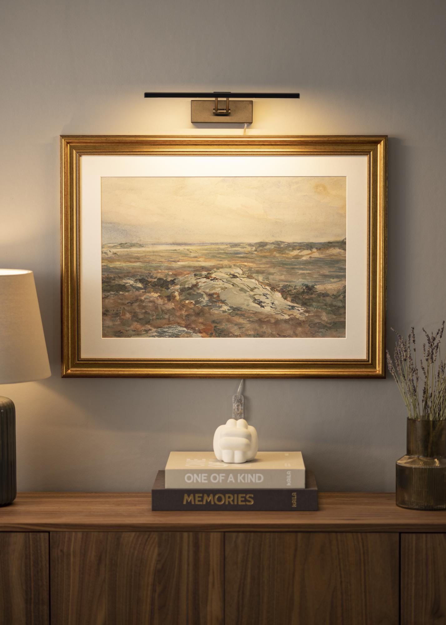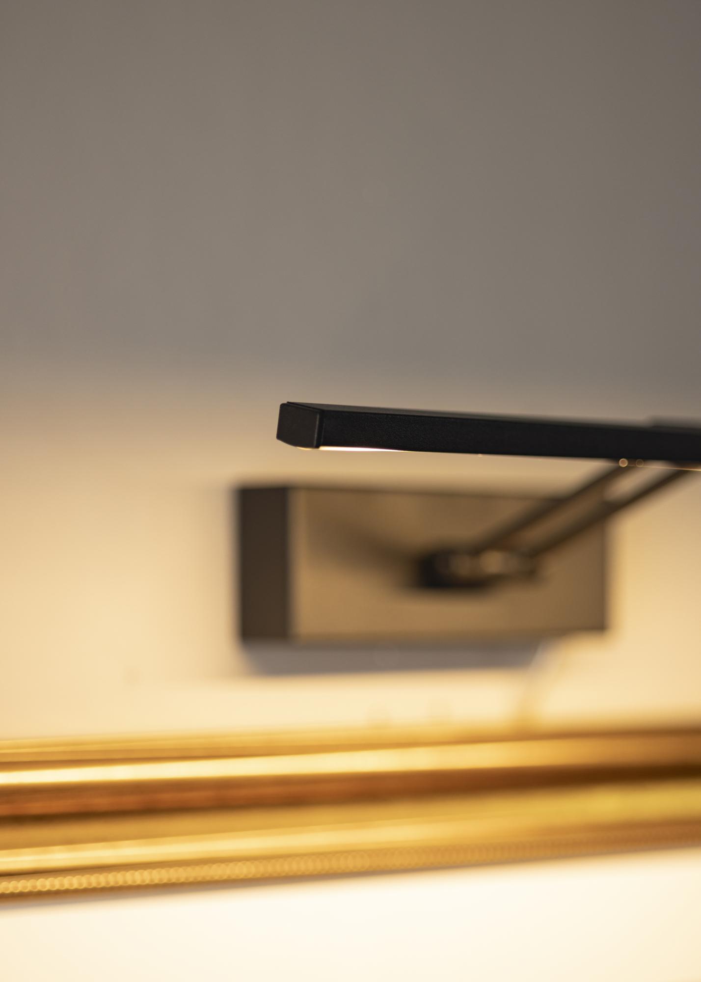 Pildivalgustus kaasaegses Rootsi disainis, mis sobib 60-100 cm laiuste piltidega. Valgusti kõrgus on 5 cm ja pikkus 37 cm, seinast kaugus 20 cm. Oma tugeva 720 luumeni LED-valgustusega saad meeldiva valgustuse ka suurematel piltidel.