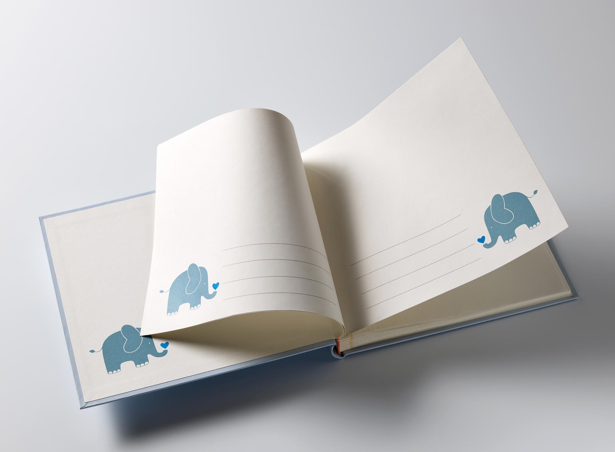 Stiilne ja armas on kaks võtmesõna, mis sobivad enamusele värsketele lapsevanematele. Siin on meil ilus beebialbum, mida võib just nii kirjeldada! Esiküljel on tekst "Hello baby" koos graafilise prindiga, millel on kujutatud elevandipoeg, kes hoiab südant. Seest leiad 50 valget lehte, millele saad luua kauneid kollaaže.