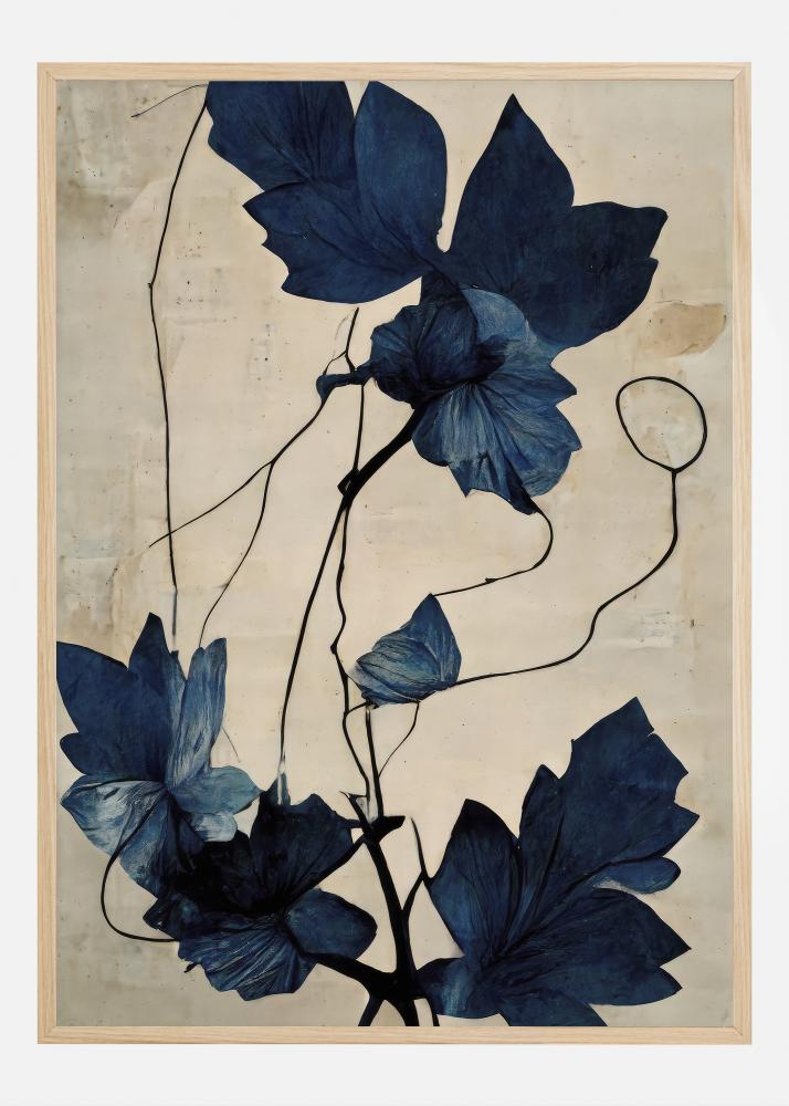 See plakat püüab köitva botaanilise ilu oma detailse ja realistliku lillede kujutamisega sügavas indigosinises värvitoonis. Lehtede ja lillede intensiivsed ja tumedad toonid loovad kontrasti vananenud paberilaadse taustaga, mis annab antiikse ja ajatu tunde. See trükk on austusavaldus klassikalisele botaanilisele illustratsioonile ja jätab elegantse ning rafineeritud mulje igas ruumis, kus see asetatakse.