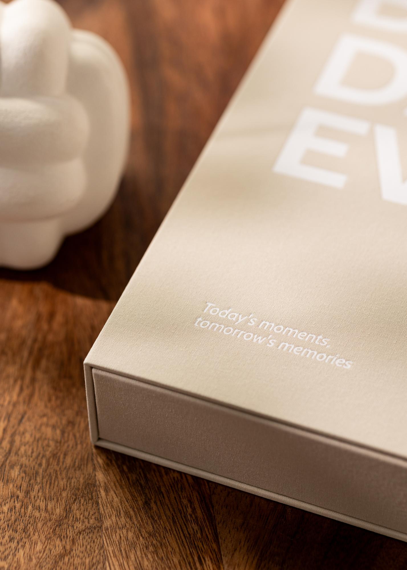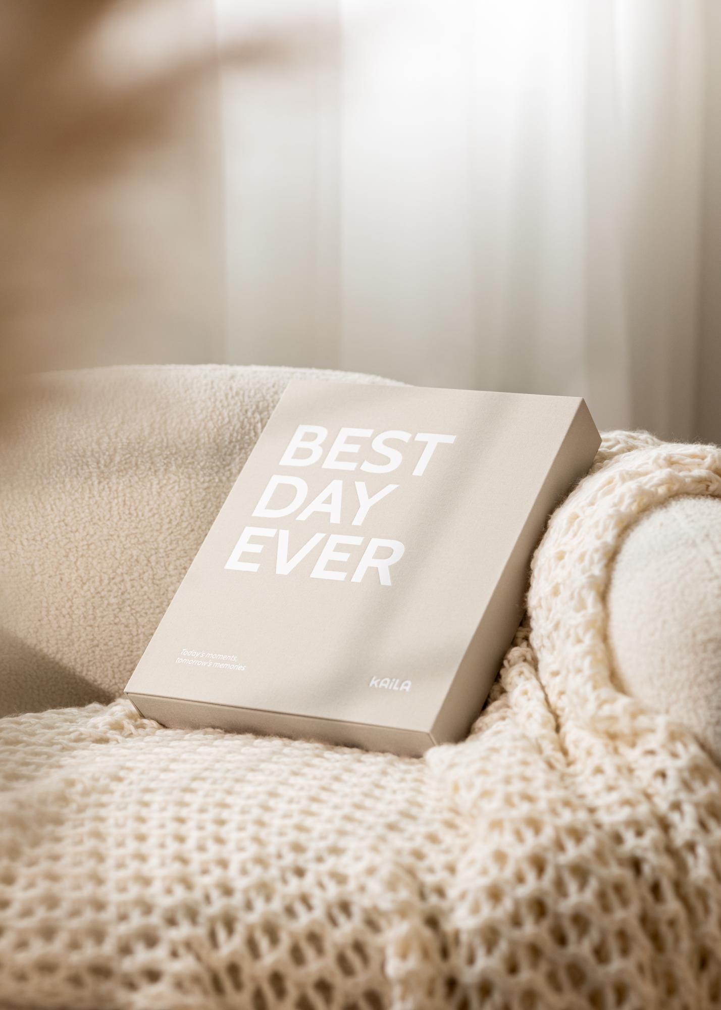 Avasta KAILA BEST DAY EVER Koor - elegantne ja stiilne fotoalbum, mis on disainitud olema kaunis sisustuselement sinu diivanilaual. Oma beežide kaante ja mustade lehekülgedega on see album pilkupüüdev Coffee Table Book, mida saad uhkusega oma kodus eksponeerida.