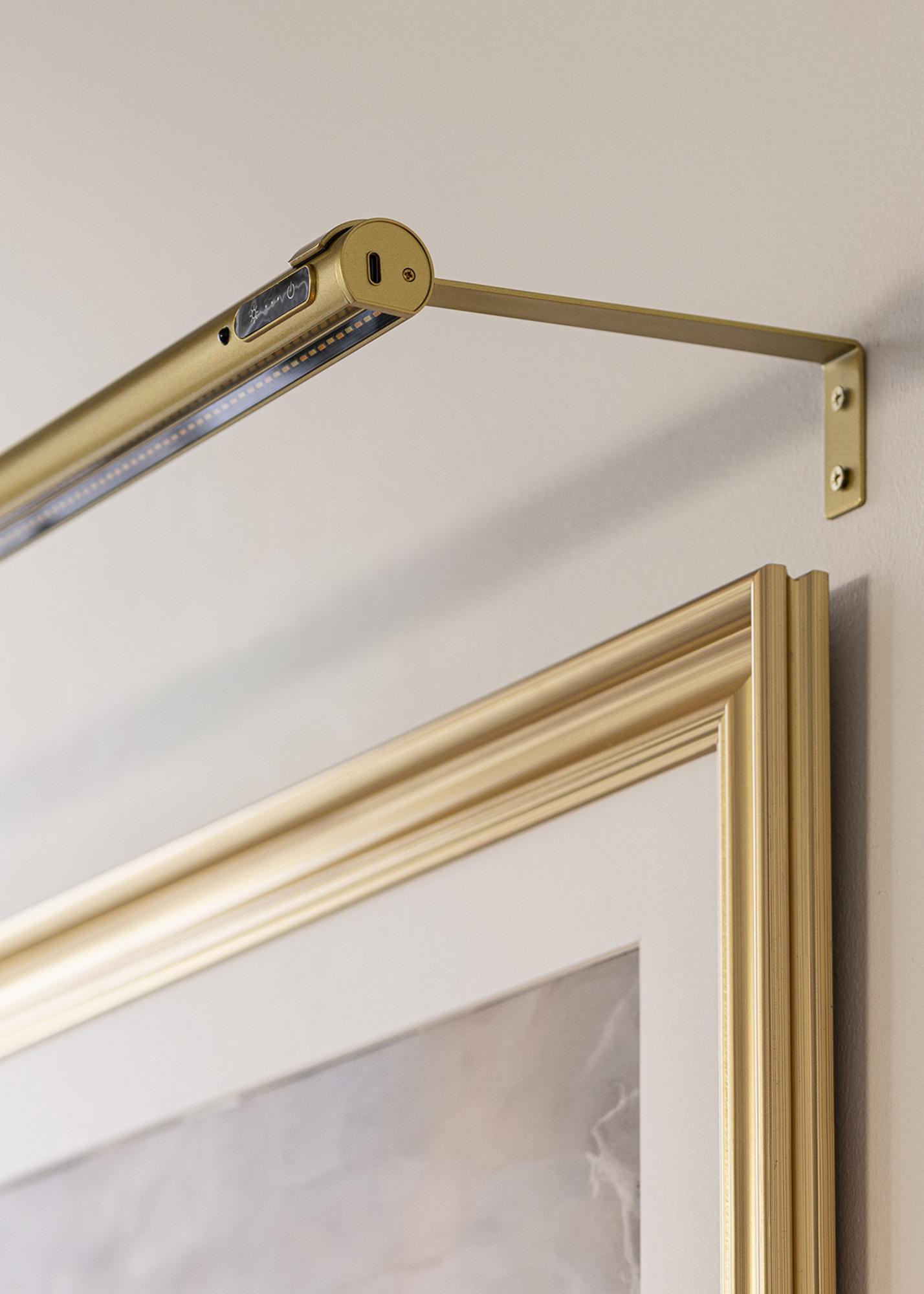 Tõstke esile oma kunstiteosed KAILA Brilliance'iga – stiilne ja patareitoitega pildivalgustus, mis annab teie maalile täiusliku valgustuse ilma juhtmeteta! Tänu juhtmevabale disainile saab seda lihtsalt paigutada ükskõik kuhu, ilma et peaksite pistikupesi arvesse võtma. Oma elegantse kuldse viimistluse ja reguleeritava käega levitab see pehmet ja ühtlast valgust üle teie maali, mis toob ilusti esile detailid ja värvid. Lihtne paigaldus ja mugav kasutamine teevad sellest pildivalgustusest suurepärase valiku nii koju kui galeriisse.