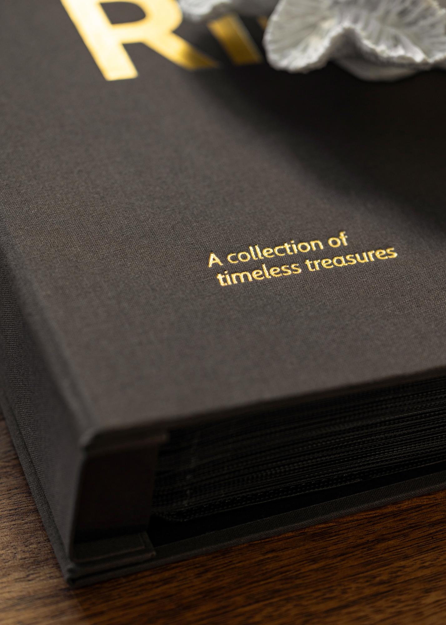Hoia oma parimaid fotosid stiilselt koos selle tekstiiliga kaetud albumiga. Fotoalbumisse mahub 300 pilti suuruses 10x15 cm, nii portree- kui maastikuformaadis, mis asetatakse praktilistesse fototaskutesse. Stiilne disain mustas toonis ja laia seljaga annab albumile luksusliku väljanägemise, mis sobib igasse koju. Lisafinessina on albumi esiküljel ja seljal kuldvärviline trükk tekstiga “MEMORIES”, millele järgneb alapealkiri “A collection of timeless treasures”, mis on trükitud vasakusse nurka.