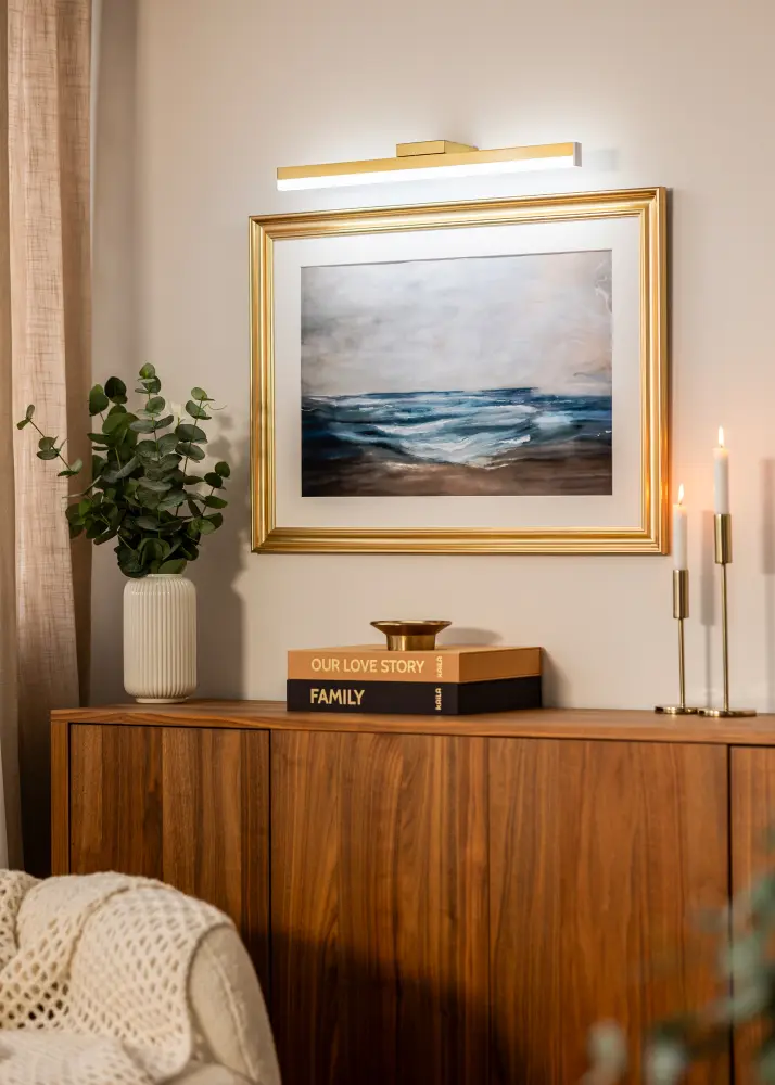 KAILA Glimmer on elegantne ja patareitoitega kuldne pildivalgustus, mis on loodud selleks, et esile tõsta teie kunstiteoseid stiilselt – täiesti juhtmeteta. Juhtmevaba konstruktsioon muudab valgustuse paigaldamise lihtsaks kõikjale, ilma et peaks arvestama elektripistikupesadega. Sofistikeeritud kuldne viimistlus annab eksklusiivse tunde, samas kui integreeritud valgus loob ühtlase ja meeldiva valgustuse. Lihtne paigaldada ja kasutada – ideaalne lahendus, et anda teie piltidele tähelepanu, mida need väärivad.