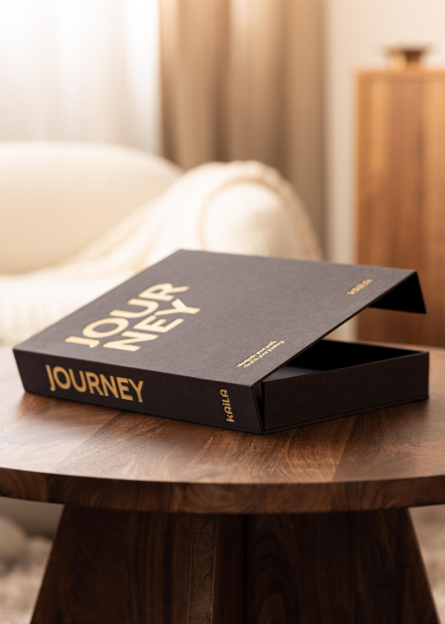 Avastage KAILA JOURNEY Must - elegantne ja stiilne fotoalbum, mis on loodud kauni sisekujunduselemendina teie kodu jaoks. Beežide kaante ja mustade lehtedega on see album ideaalne kohvilaudade raamat, mida saate uhkusega näidata.