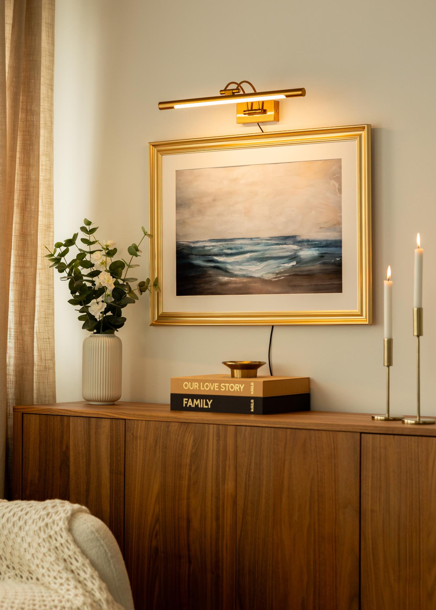 See elegantne messingist pildivalgusti on loodud selleks, et rõhutada teie kunstiteoseid stiilsel ja funktsionaalsel viisil. 19 cm sügavuse ja 50 cm pikkusega sobib see suurepäraselt kuni 90 cm laiuste piltide jaoks, muutes selle mitmekülgseks valikuks eri tüüpi kunstiteoste jaoks. Sisseehitatud LED-valgusallikas annab meeldivat valgust, mille värvitemperatuur on 3000K, luues sooja ja kutsuva atmosfääri ilma üle koormamata.