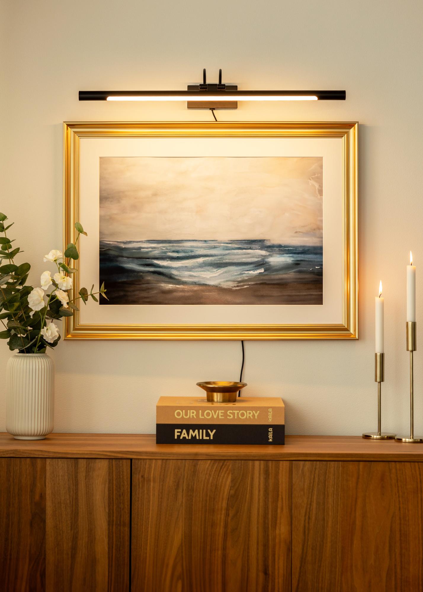 Selle musta pildivalguse ühendab kaasaegse elegantsi praktilise funktsionaalsusega, tehes sellest ideaalse valiku oma kunstiteoste ja fotode esiletõstmiseks. Sügavusega 19 cm ja pikkusega 68 cm sobib see kuni 110 cm laiuste piltide valgustamiseks. Valgustusel on integreeritud LED-valgusallikas, mis annab pehme ja sooja valguse 3000K, tuues detailid esile ilma pimestamata. Valgustugevusega 780 luumenit annab see ühtlase valguse jaotuse, mis ei ole ülekaalukas, vaid pigem loob meeldiva atmosfääri sinu kunstiteose ümber.