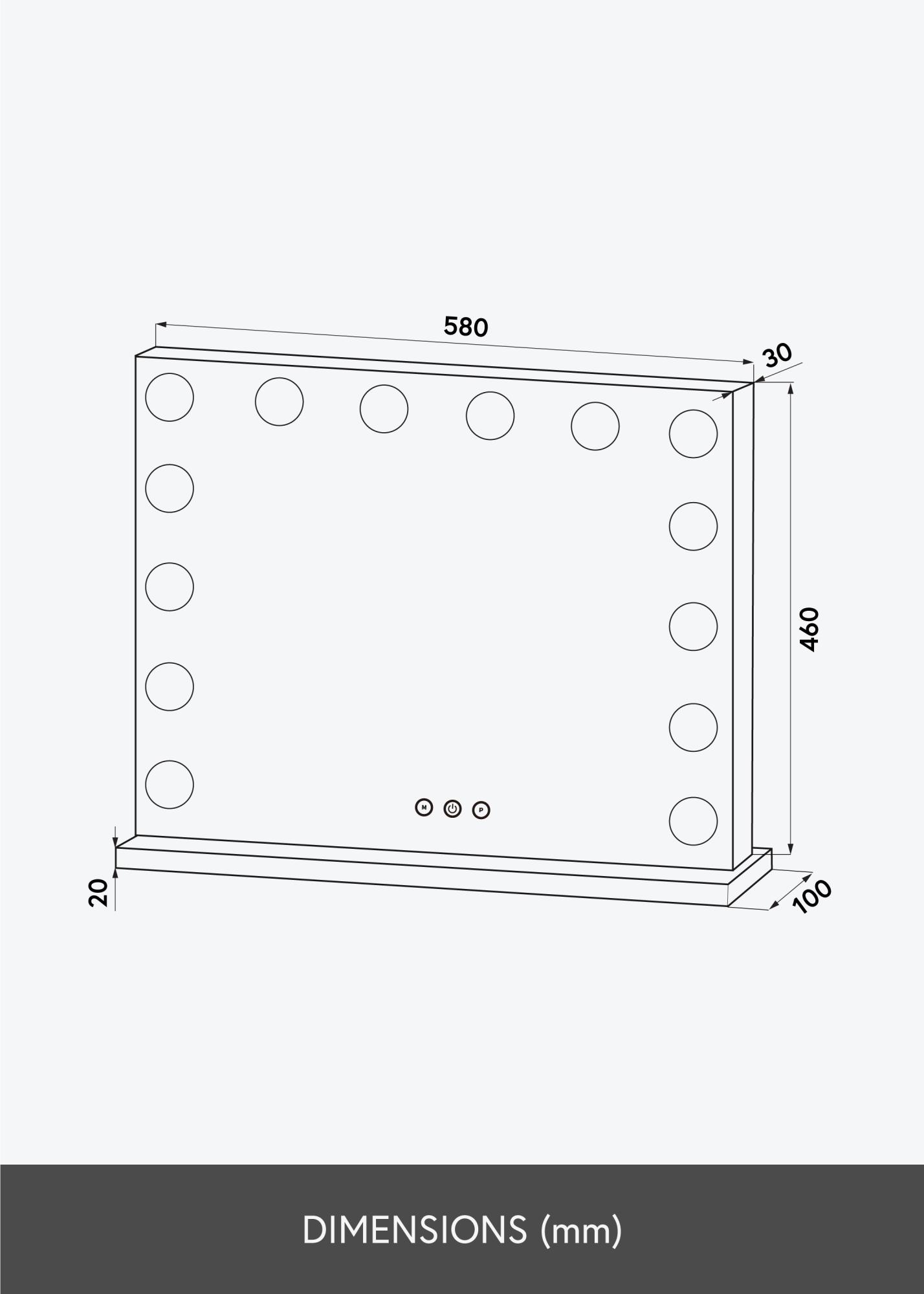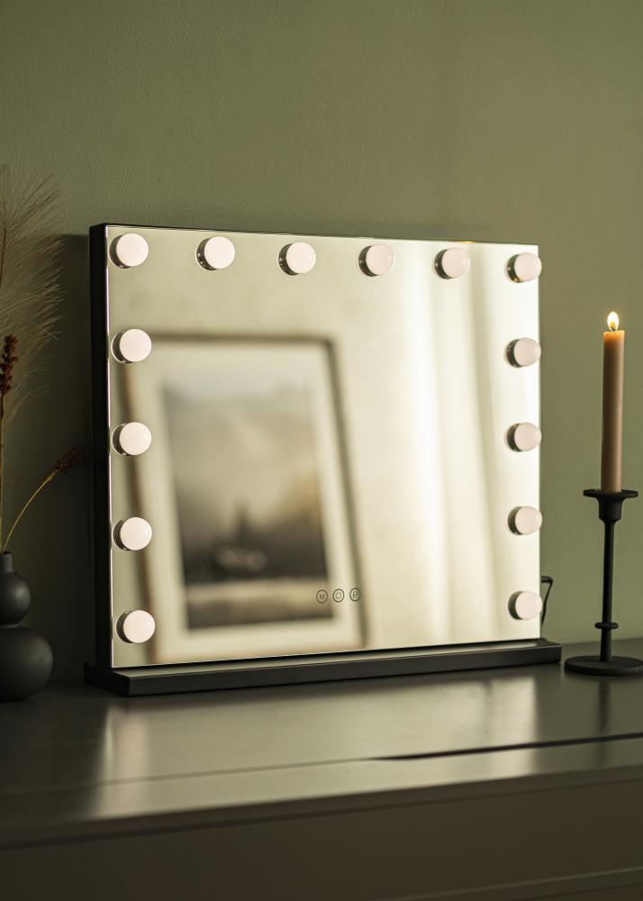 Lase sellel meigipeeglil lisada glamuur sinu magamistoa meigilauale või elutoa abilaudadele. Peegel on elegantse disainiga, kus ristkülikukujulist peegelplaati raamib kaunilt 14 LED-lampi. Peegli küljed ja alus on stiilselt musta värvi, mida saab hõlpsasti ülejäänud sisustusega kokku sobitada. Aluse saab monteerida külge ja lahti, nii et saad ise valida, kas soovid oma peegli seisma jätta või seinale paigaldada.