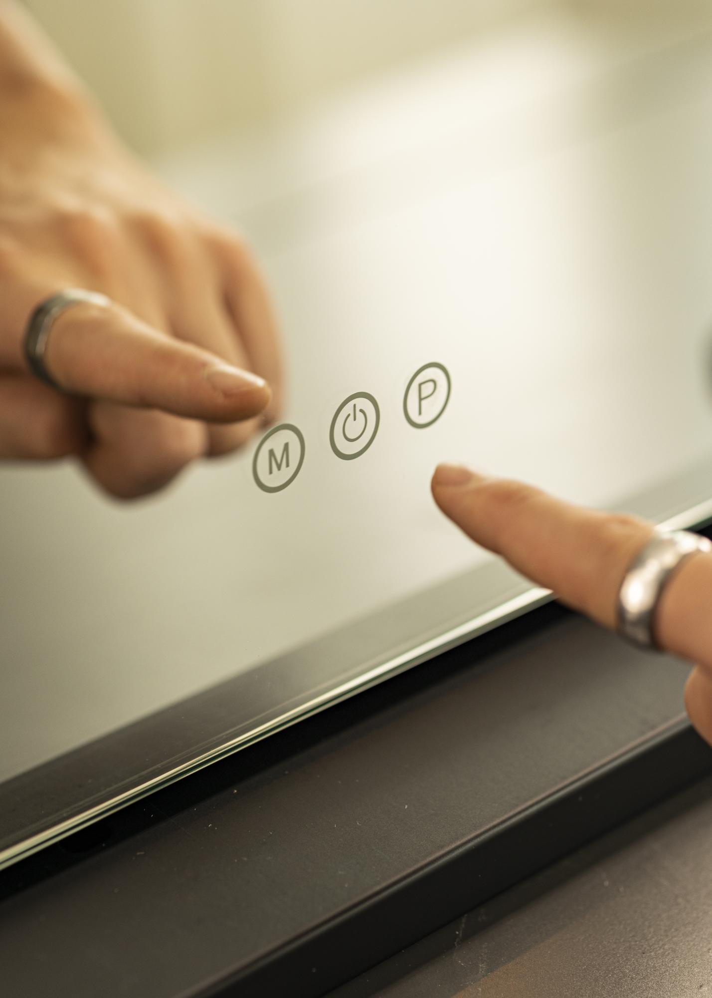 Saad reguleerida peegli valgusasetusi puutetundlike nuppude abil, mis asuvad peegli alumisel serval. "M" tähisega nupp seadistab valguse värvitemperatuuri vahemikus 3000K-6000K ja "P" tähisega nupp vähendab valguse tugevust. Samuti on olemas nupp, millega valgust saab sisse ja välja lülitada. Elektriühendus toimub pistikühenduse kaudu.