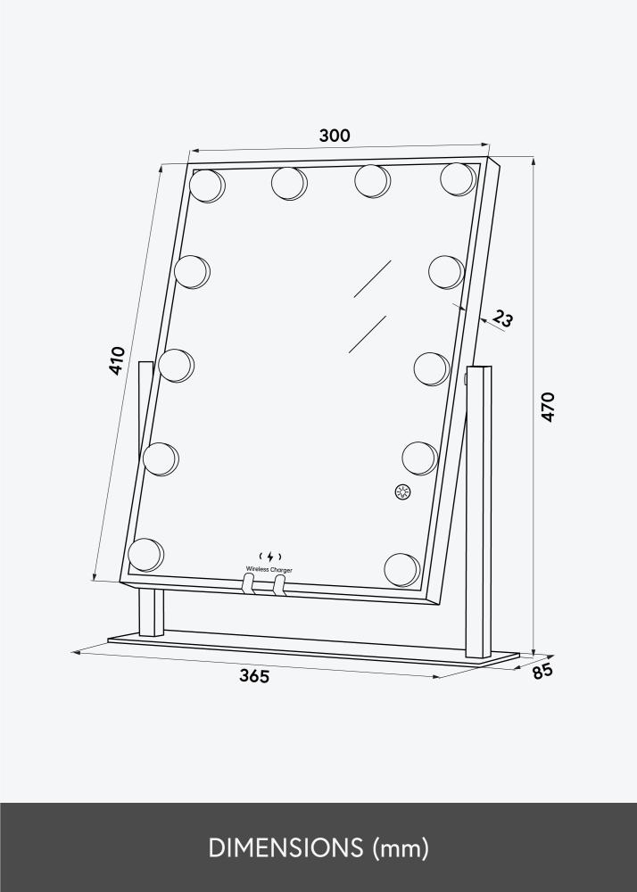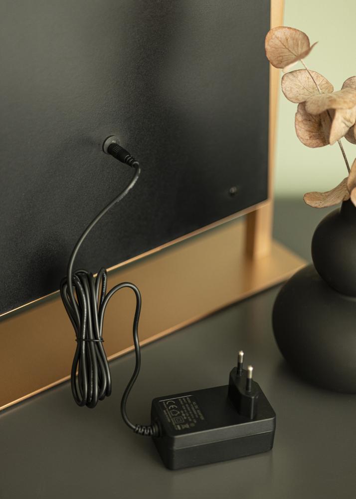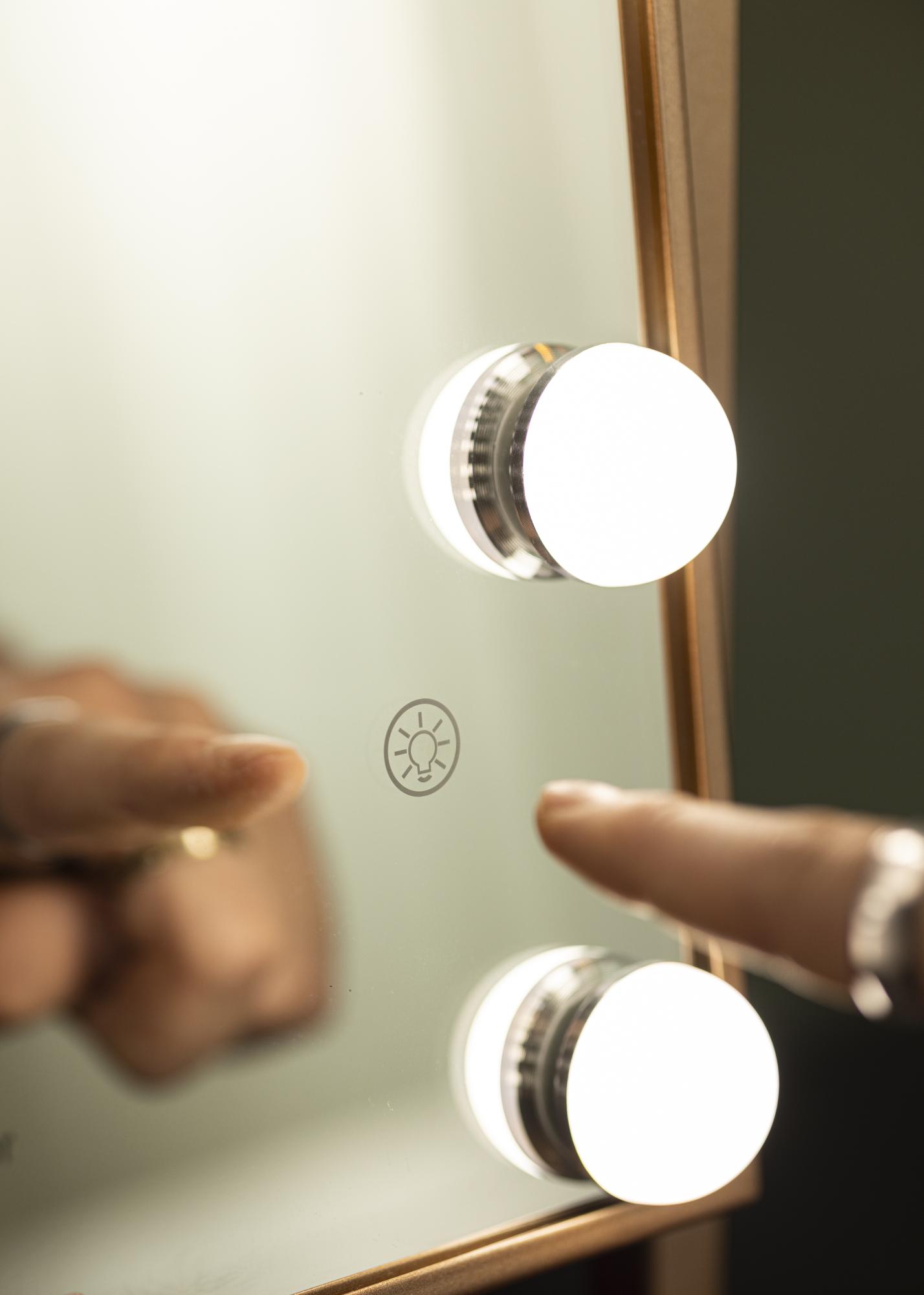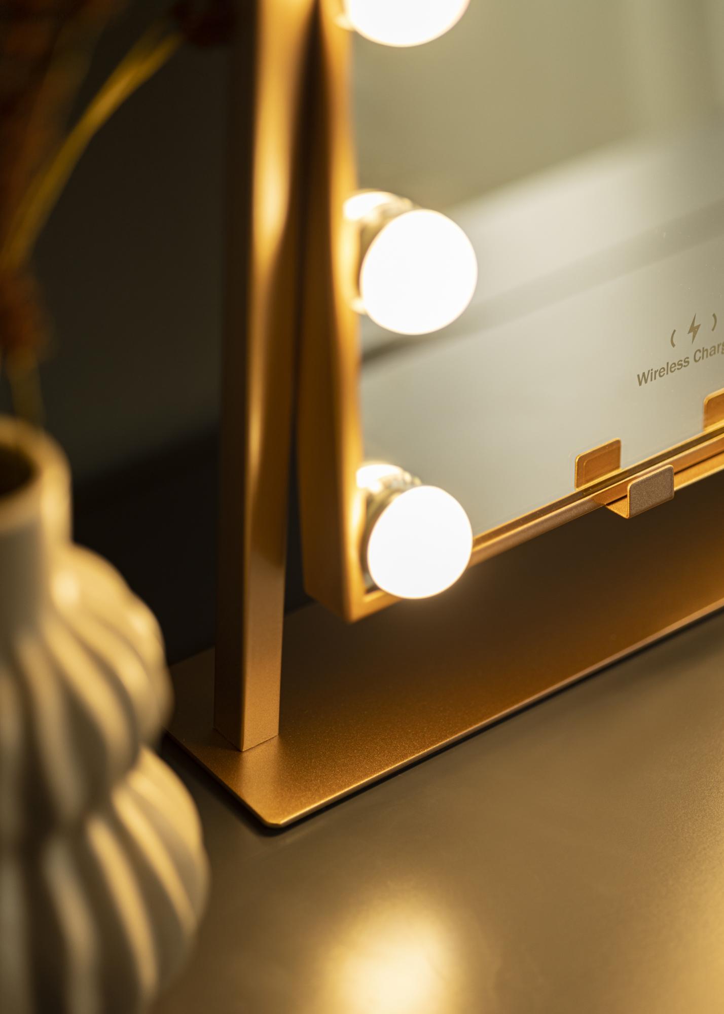 See on roosakuldse tooniga meikimispeegel, mille luksuslikuks funktsiooniks on juhtmevaba laadimine! Kui peegel on sisse lülitatud, asetage oma telefon ettenähtud kohale, et seda laadida võimsusega 5V/2A (10W). Laadimisfunktsioon töötab kõigi nutitelefonide seadmetega, mis toetavad juhtmevaba laadimist. Teised nutikad funktsioonid, mida see peegel pakub, on reguleeritav peegelpind ja sisseehitatud LED-valgustus, mis pakub head valgustust meigi pealekandmisel. Valgustus koosneb 12 LED-lambist, mis kaunilt raamistavad peegelpinda ja annavad kogu peeglile stiilse välimuse. Valgustus on hämardatav ning soovitud valgus tugevuse seadistamiseks hoidke ees asuvat puutenuppu paar sekundit all.
