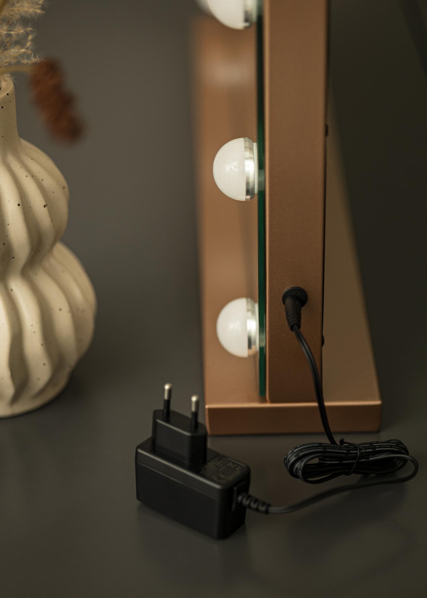 See meigipeegel saab olema trendikas sisustuselement esikus ja elutoas – või äkki plaanite asetada selle meigilauale, et luua luksuslik meiginurk? Peegel on Hollywoodist inspireeritud disainiga, suurte sisseehitatud LED-lampide ja roosa kulla toonis alusega. Aluse saab monteerida ja demonteerida, nii et saate ise valida, kas soovite oma peeglit hoida püstiasendis või riputada seinale.
