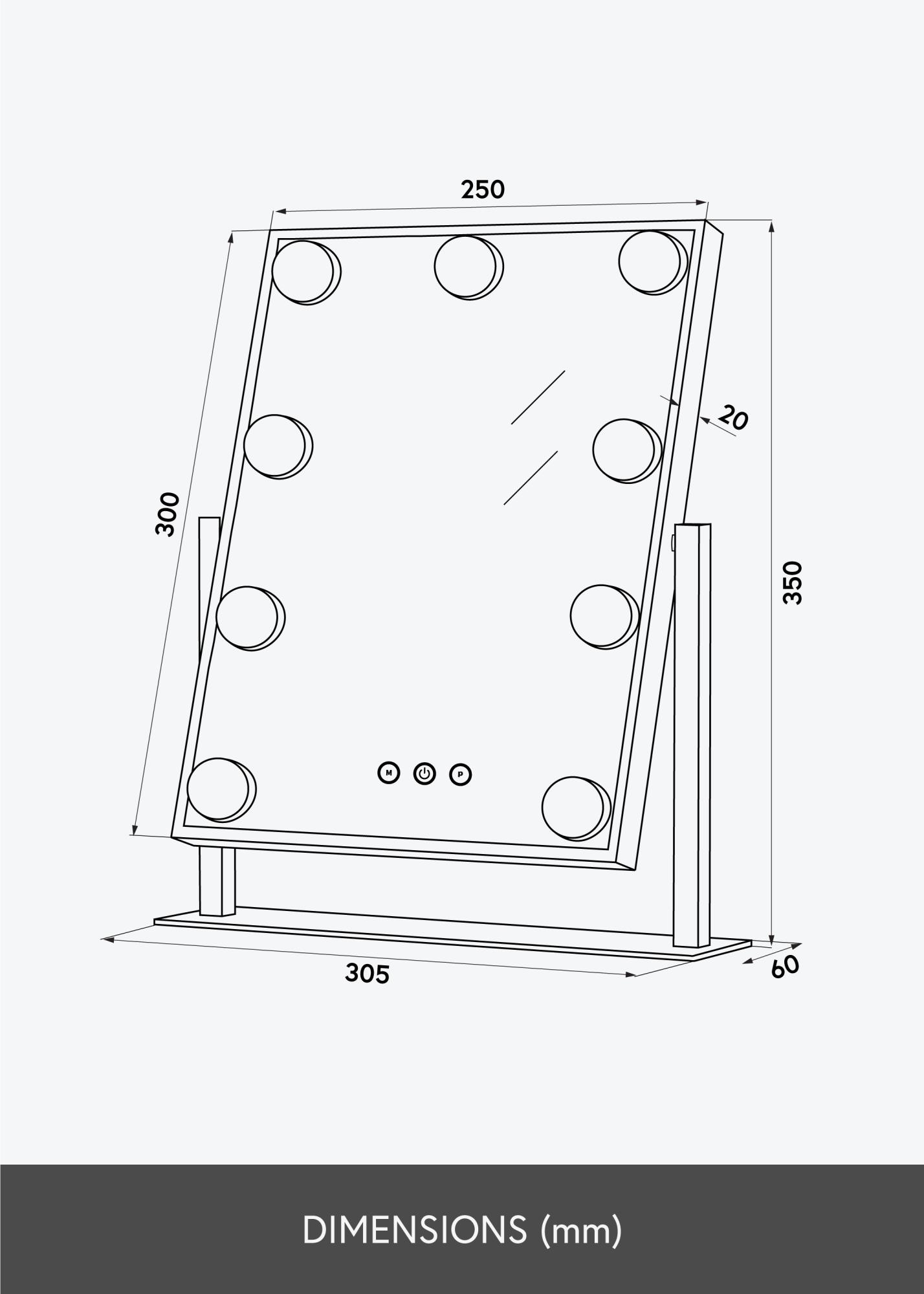 See meigipeegel on ideaalne neile, kes soovivad tugevat valgustust peegli ees istudes. Hollywoodi inspireeritud disain, suuremate LED-lampidega, mis raamivad peeglipinna, muudab peegli ka ilusaks taustavalgustuseks elutoas või esikus. Peeglipinda saab kasutada väljapoole või sissepoole paigaldamiseks, pakkudes kasutamisel lisapaindlikkust.