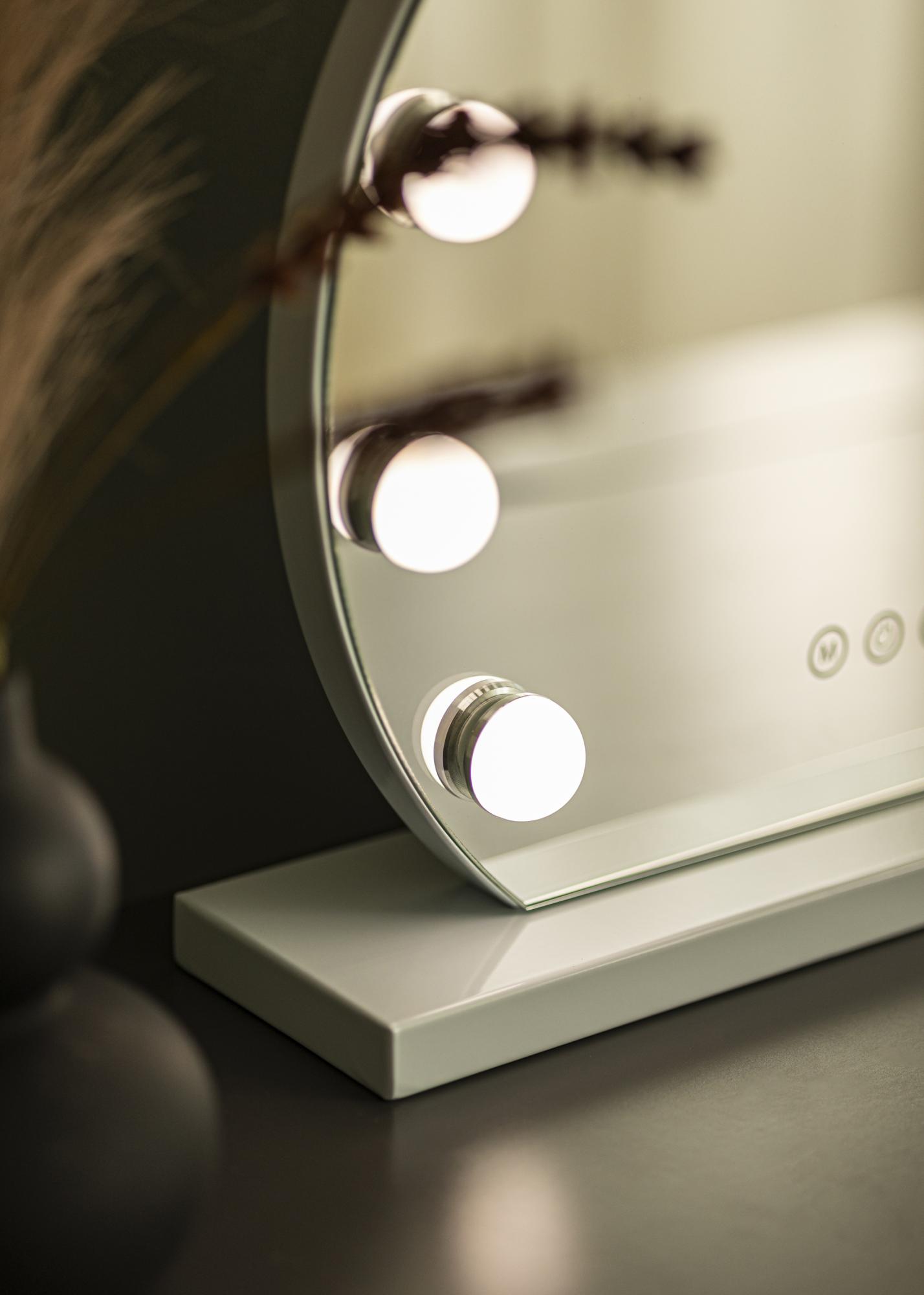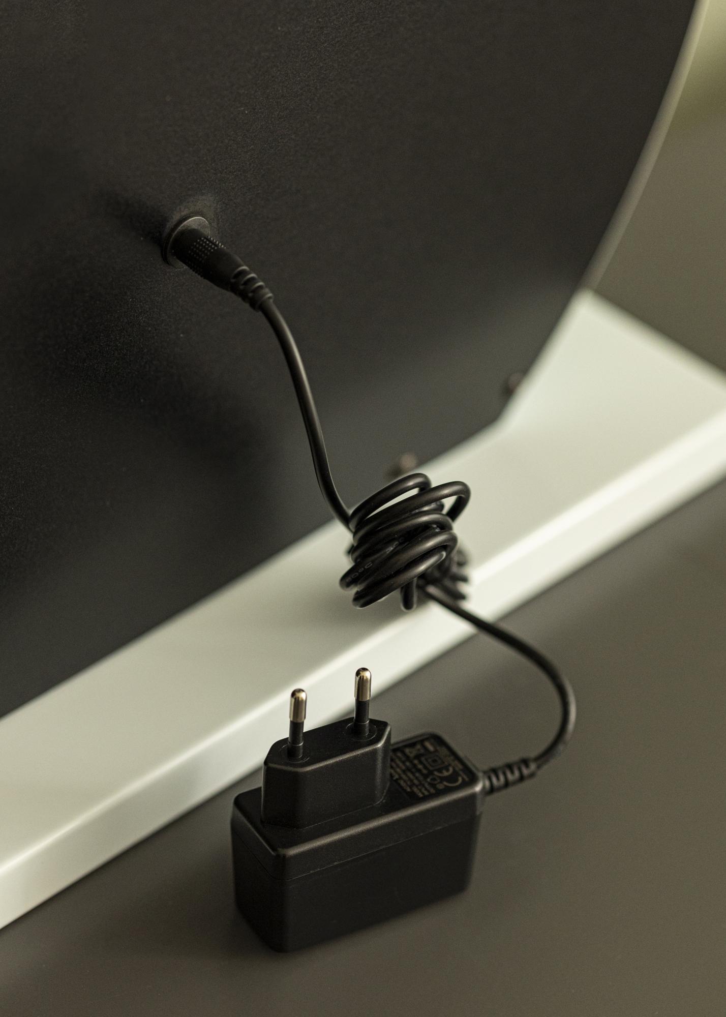 See on luksuslik meigipeegel sisseehitatud LED-valgustusega, mis tagab ühtlase valguse teie näole peegeldamise ajal. Valgustus koosneb 10 LED-lambist, mis asuvad piki peegli serva. Valgustust saab kohandada vastavalt individuaalsele maitsele, kuna teil on võimalus reguleerida nii heleduse kui ka värvitemperatuuri. Valgusseadeid tehakse puutetundlike nuppude abil, mis asuvad peegli alumises servas ja on tähistatud tähtedega. Nupul, mis on tähistatud "M"-ga, saate valida värvitemperatuuri sooja, külma ja loomuliku valguse vahel. Nupp, mis on tähistatud "P"-ga, kasutatakse valguse hämardamiseks. Samuti on olemas sisse-/välja-lüliti, mida kasutatakse valgustuse sisse- ja väljalülitamiseks. Elektriühendus toimub pistikuga.