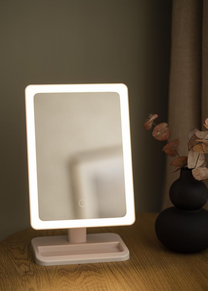 Peegel on stiilse välimusega, neutraalne valge värv ja LED-riba raamivad 16,5x25 cm suurust peeglipinda. Sa saad valgustugevust reguleerida, hoides nuppu peeglil mõned sekundid all. Nii saab määrata enda jaoks sobivaima valguse tugevuse. Peegli nutikas disain võimaldab pöörata ja kallutada peegelpinda vastavalt soovile ning kerge kaal muudab peegli hõlpsalt liigutatavaks. Kaasas on väiksem peegel 10x suurendusega. See sobib ideaalselt, kui soovid peegeldada üksikasjalikult osa oma näost. Peegel töötab sisseehitatud akuga, mis laetakse kaasasoleva laadimiskaabliga.