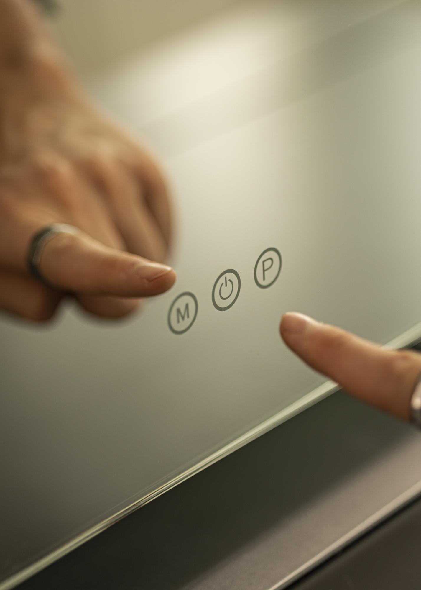 Elegantse meigiklaasiga saate luua luksuslikuma atmosfääri igas ruumis. Sellel peeglil on sisseehitatud LED-valgustus, mida saab kohandada sõltuvalt sellest, kas soovite meeldivat taustvalgustust elutoas või teravat valgust meiginurgas. Valgustuse kohandamiseks kasutage peegli alumisel serval asuvaid puutetundlikke nuppe; "M"-nupp reguleerib valguse värvustemperatuuri ja "P"-nupp muudab heledust. Samuti on sisse- ja väljalülitusnupp, et peegli valgustust sisse või välja lülitada. Elektriühendus toimub pistikuga.