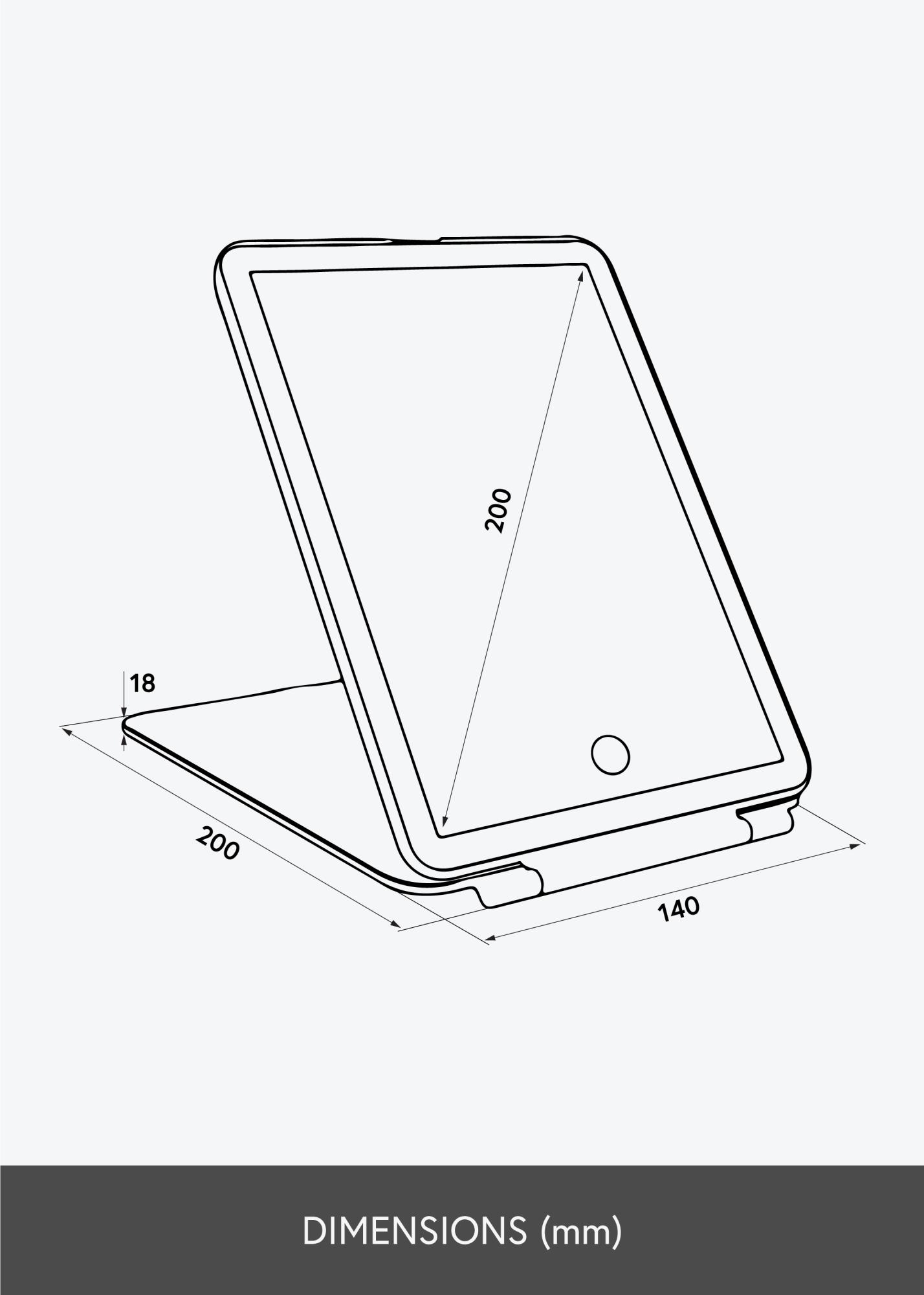 Stiilne, sujuv ja kerge – see meigipeegel sisaldab kõike, mida vajad liikvel olles. Kompaktne formaat, peegelduva pindalaga 14x20 cm, teeb selle kergesti kaasaskantavaks igal puhul. Meigipeegel on kokkupandava disainiga, mis kaitseb peeglitolmu eest, kui seda ei kasutata, ja avatuna saad peeglit soovitud asendisse sättida.