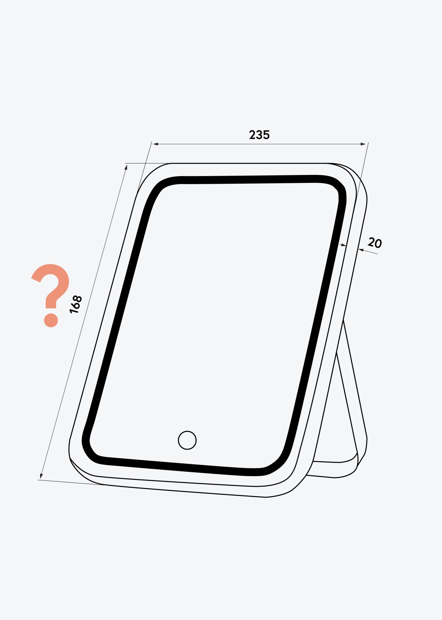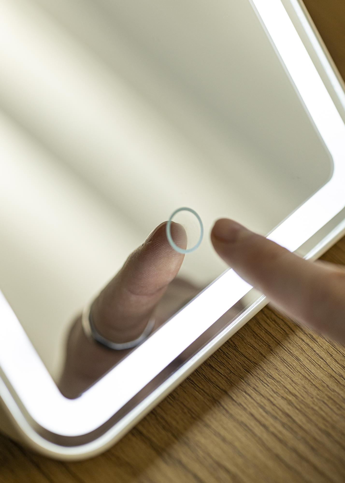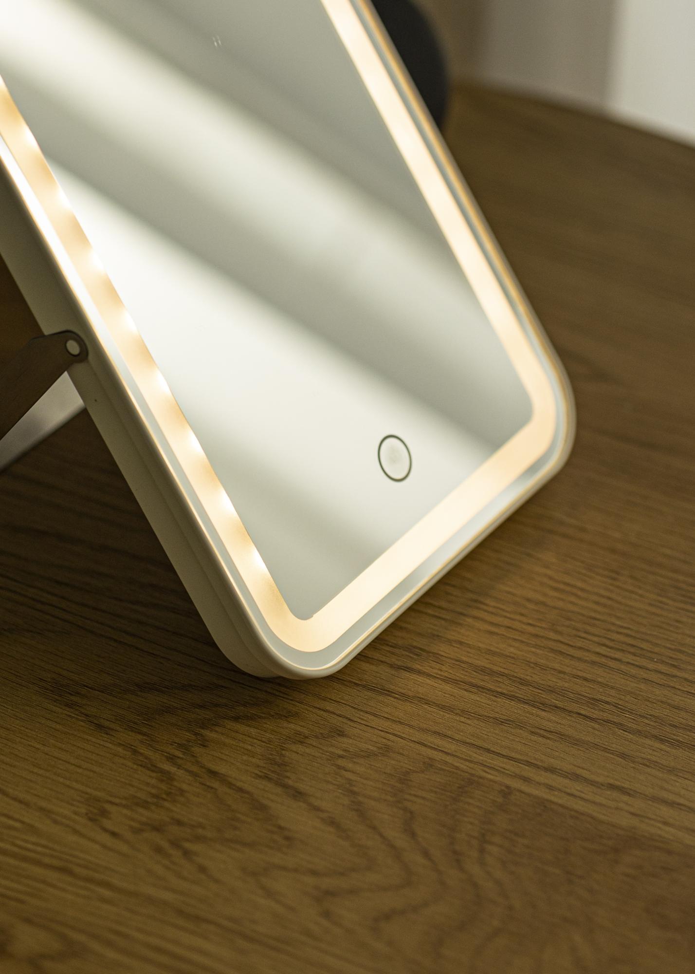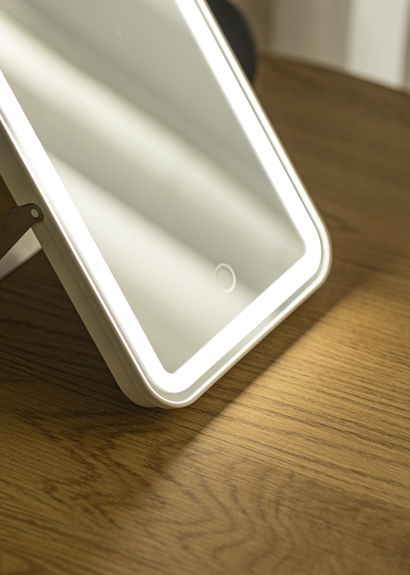 See on väike meigipeegel, mis on ideaalne sulle, kes soovib peeglit reisidel kaasa võtta. Selle peegelduse pindala on 16,5x23 cm ning raamitud elegantse LED-ribaga. Sinu mugavuse huvides saad hõlpsasti dimmerdada valgust või muuta valgustuse värvustemperatuuri. Seda teed, hoides peegli allservas oleval puutenupul mõneks sekundiks all.