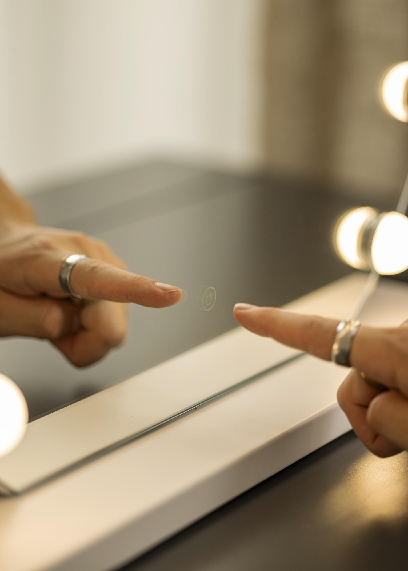 Kogege Hollywoodi glamuuritunnet selle meigipeeglilampidega, mis ühendab endas elegantsi ja funktsionaalsuse kaunil viisil. Meigipeegel on värsket valget tooni ja varustatud 12 dekoratiivse LED-pirniga, mis kiirgavad sooja valget valgust 3000K juures, luues ideaalsetele tingimustele jumestuse pealekandmiseks. Valgust saab lihtsalt puudutusnupuga aktiveerida ja reguleerida ning kuna see kasutab LED-tehnoloogiat, on see nii energiasäästlik kui ka annab loomulikku valgust.