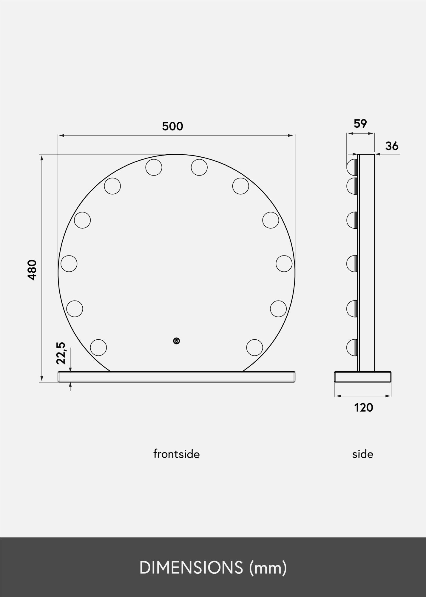 Oma mõõtmetega 50x48 cm ja kaunilt ümara kujuga on see meigipeegel mitte ainult praktiline, vaid ka stiilne sisekujunduselement, mis lisab teie koju luksusliku tunde. See on ideaalne iga ruumi isiklikuks ilusalongiks muutmiseks, kus tunnete end nii glamuurse kui ka mugavana. Eksklusiivne välimus tõstab meeleolu ja muudab teie meiginurga toa keskpunktiks.