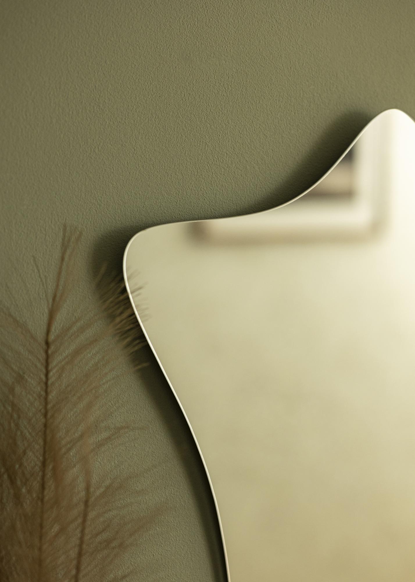 Modern minimalism ja loodusest inspireeritud kuju – see seinapeegel pakub sulle mõlema maailma parimat! Unikaalne kuju meenutab õitsevaid anemoone, samas kui raamita disain ja 4 mm õhuke peegliklaas annavad peeglile elegantse ja kaasaegse ilme.