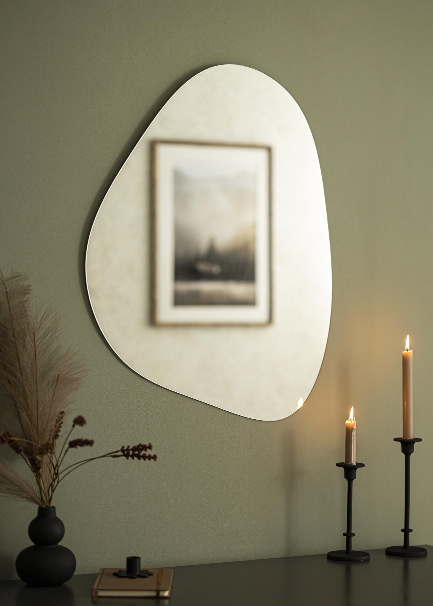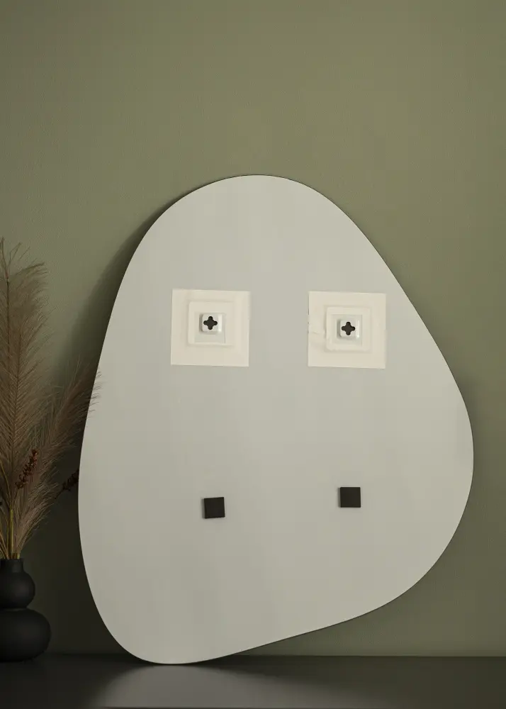 Ümmargused ja ristkülikukujulised peeglid on kõik väga head – aga kui soovite peeglit, mis tõesti pilku püüab, peaksite valima asümmeetrilise variandi. See seinapeegel on ainulaadse vormiga ja elegantse raamita disainiga. Ainult 4 mm paksune peegel klaas tugevdab veelgi stiilset ilmet.