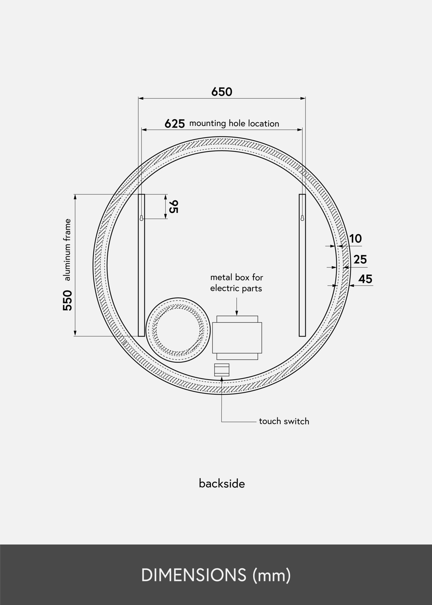 Sellel peeglil on trendikas raamita välimus, mistõttu on see stiilne nii vannitoas kui ka esikus. Peegel on ette nähtud püsivaks paigalduseks ja ühendatakse lülitiga. Peegli korrektseks toimimiseks tuleb see ühendada tavalise lülitiga, mitte dimmerlülitiga.