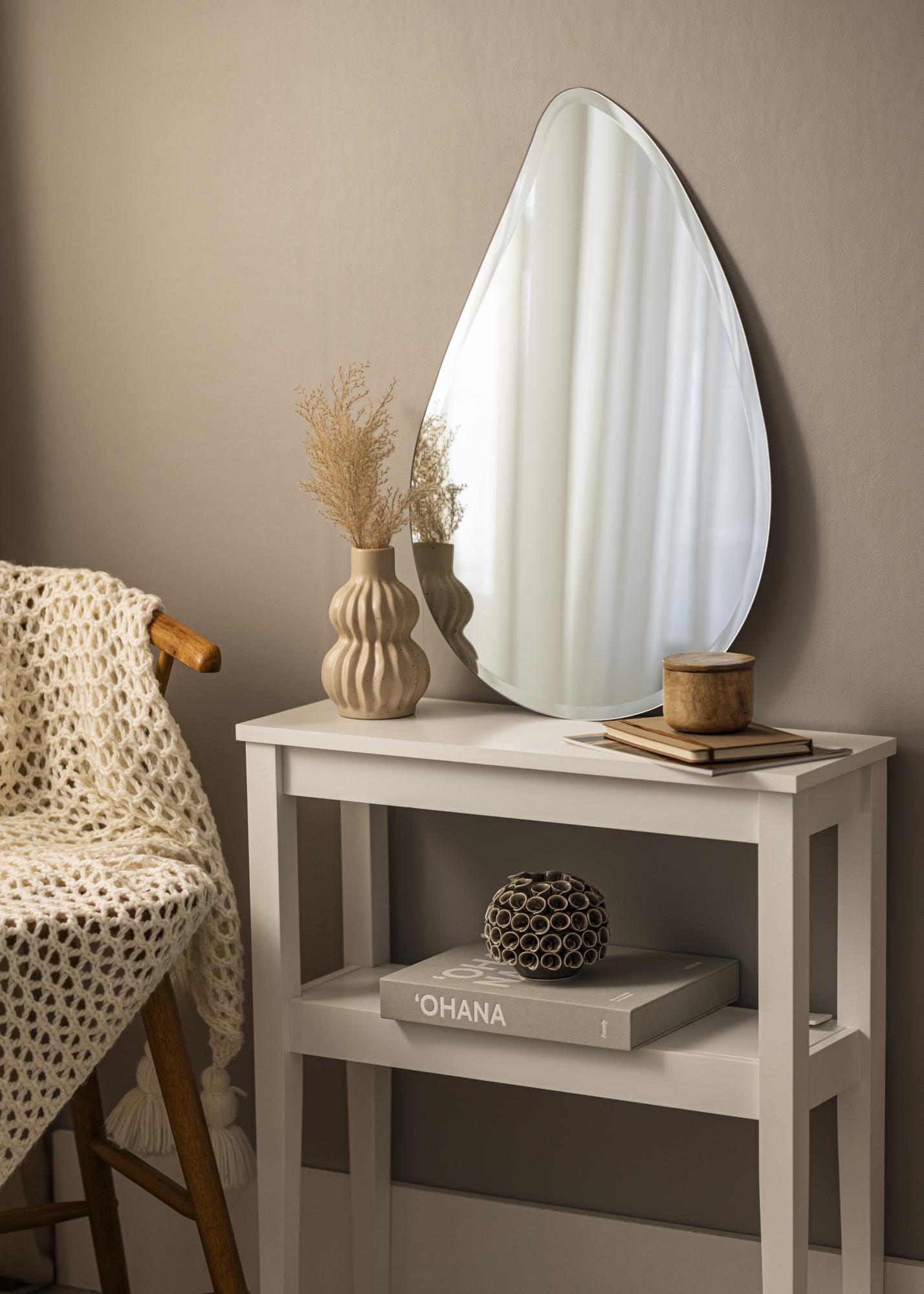 Asetage see elegantne peegel nii, et see pakuks nii dekoratiivset kui ka funktsionaalset kasu, näiteks esikus, magamistoas või elutoas. See tilgakujuline peegel on saadaval mitmes suuruses, millest see variant on suurusega 45x70 cm.