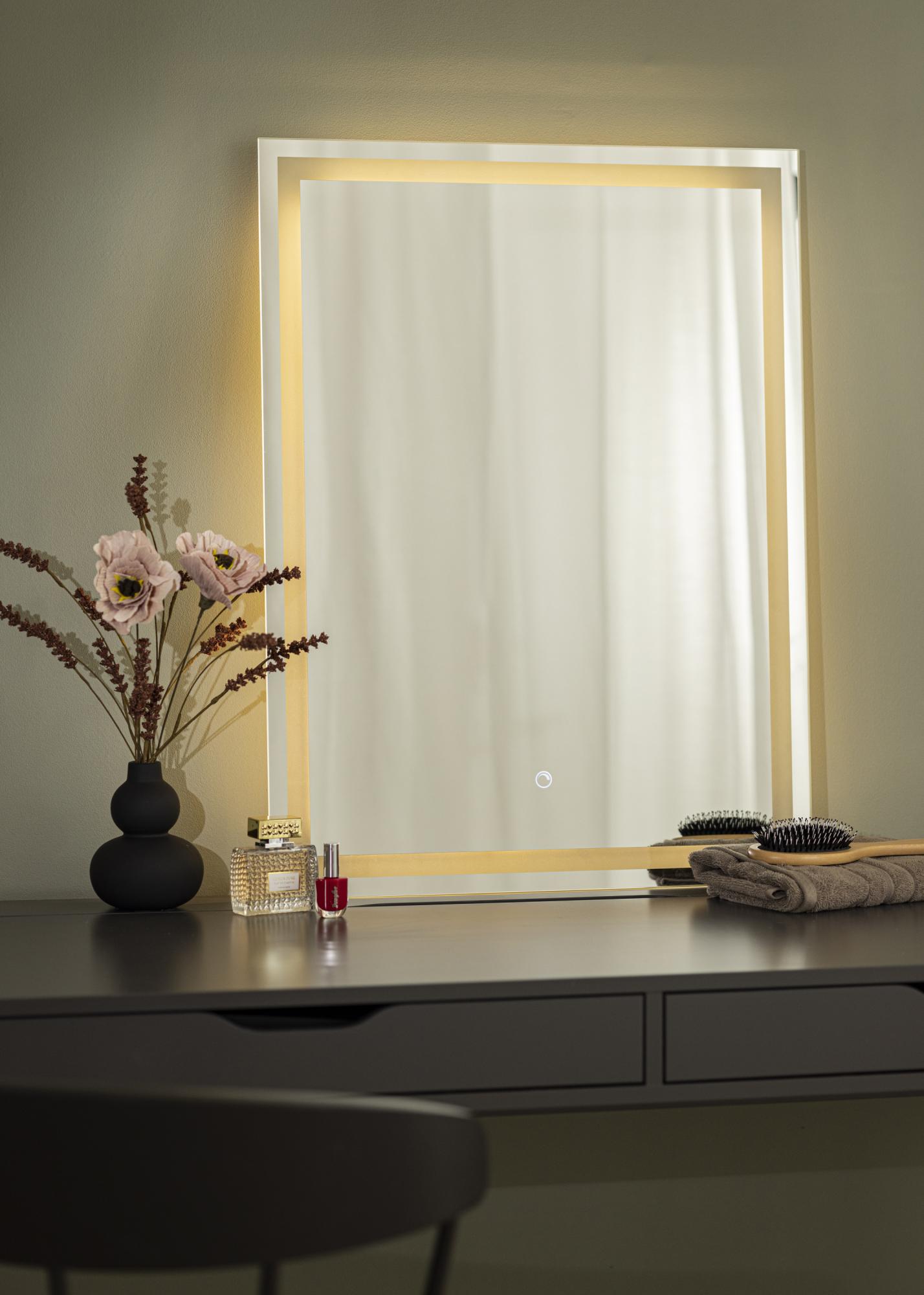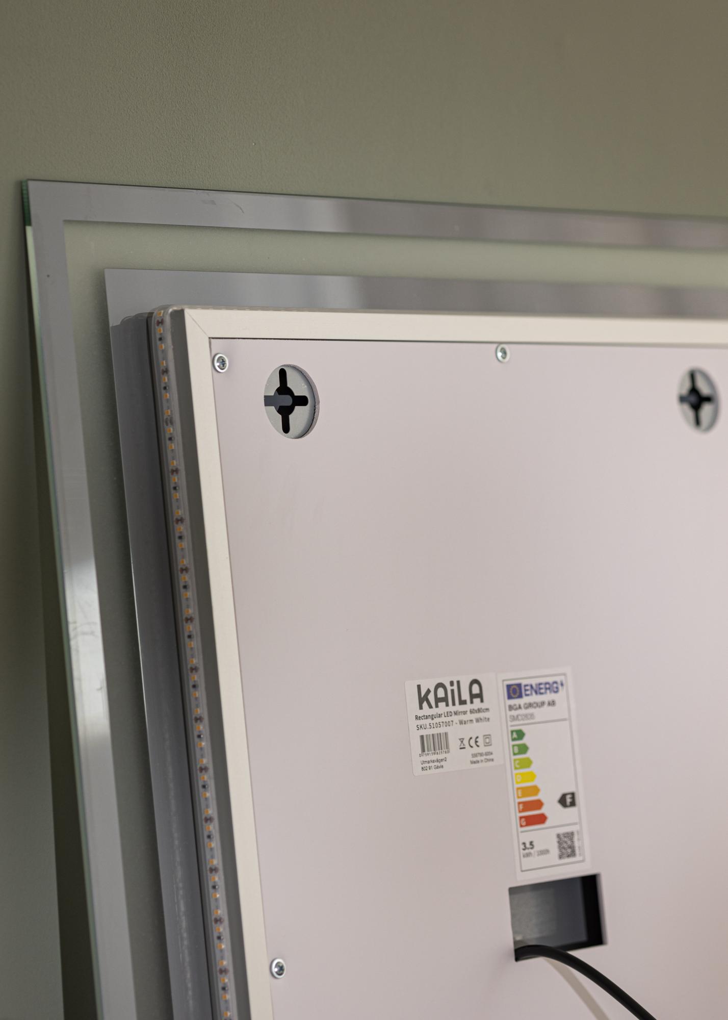 Kui soovid modernset ja minimalistlikku valgustusega peeglit, siis on see peegel just sulle. See on varustatud energiasäästlike LED-lampidega, mis annavad ühtlast valgust, mis on ideaalne meigi pealekandmisel või lihtsalt peeglisse vaatamiseks päeval. Valgustus on paigutatud peegli taha, kuid kumab läbi nagu elegantne raam peegli esiküljel. Valgustuse heledust reguleerid, hoides peegli alumisel serval asuvat puutetundlikku nuppu paar sekundit all.