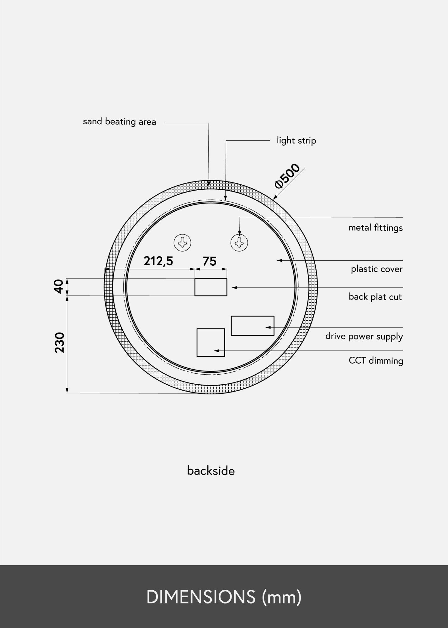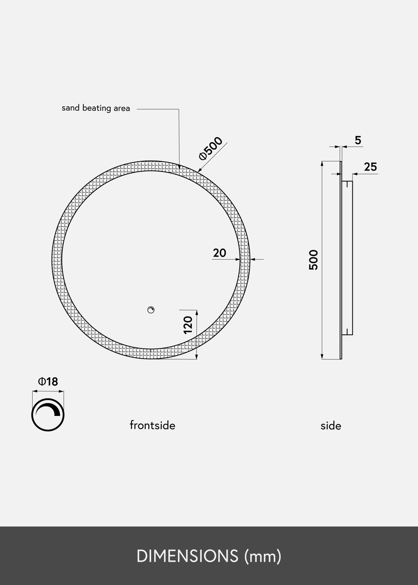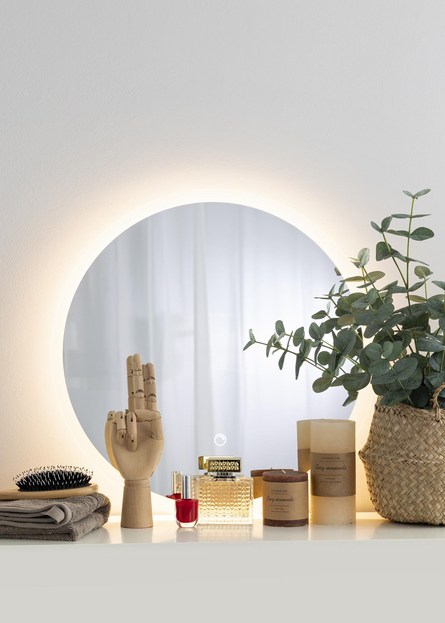 See on klassikaline ja stiilne ümmargune vannitoapeegel. Peeglit ümbritseb matt serv, millel on integreeritud LED-valgustus. Valgustus süttib peegli tagant ja annab meeldiva sooja valge valguse ettepoole temperatuuriga 3000K. Valgustus on hämardatav ja saate selle tugevust lihtsalt reguleerida, hoides nuppu paar sekundit all. Järgmisel korral, kui valguse sisse lülitate, mäletab peegel, mis valgusjõu seade oli. Peeglil on kinnitusvahendid seinale ja see on heaks kiidetud vannituppa paigaldamiseks. Vannitoapeegel on mõeldud statsionaarseks paigalduseks ja ühendatakse lülitiga. Selleks, et peegel korralikult toimiks, tuleb see ühendada tavalise lülitiga, mitte hämardiga.