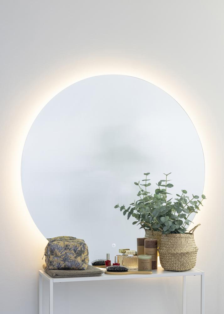 See on klassikaline ümmargune vannitoa peegel Rootsi ettevõttelt KAILA. Vannitoa peeglil on sisse ehitatud hämardatav LED-valgustus ümberringi, mis valgustab tagantpoolt ja annab ettepoole meeldiva sooja valge valguse 3000K. Valgustus on hämardatav ja saate kergesti reguleerida valguse tugevust, hoides nuppu all paar sekundit. Järgmine kord, kui valgustuse sisse lülitate, mäletab peegel, millisele valguse tugevusele see oli seadistatud. LED on energiasäästlik valgusallikas, mis annab ühtlase ja loomuliku valguse.