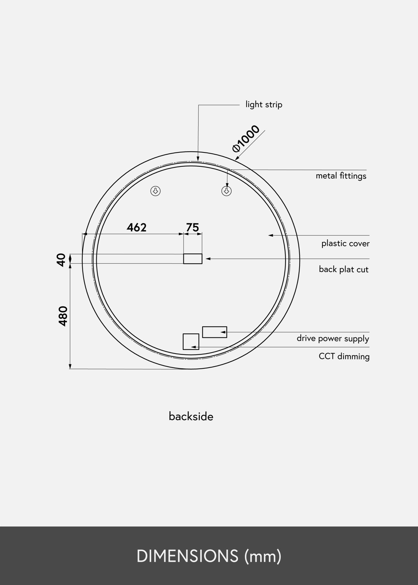 Peegel on vannitoaks heaks kiidetud, kuid selle ajatu ja elegantne disain sobib ka teistes kodu seintel. Peegli läbimõõt on 100 cm, see on ainult 3 cm sügav ja sellel on seinakinnitused. Peegel on ette nähtud kindlaks paigalduseks ja ühendatakse lülitiga. Selleks, et peegel korralikult töötaks, tuleks see ühendada tavalise lülitiga, mitte hämarduslülitiga.