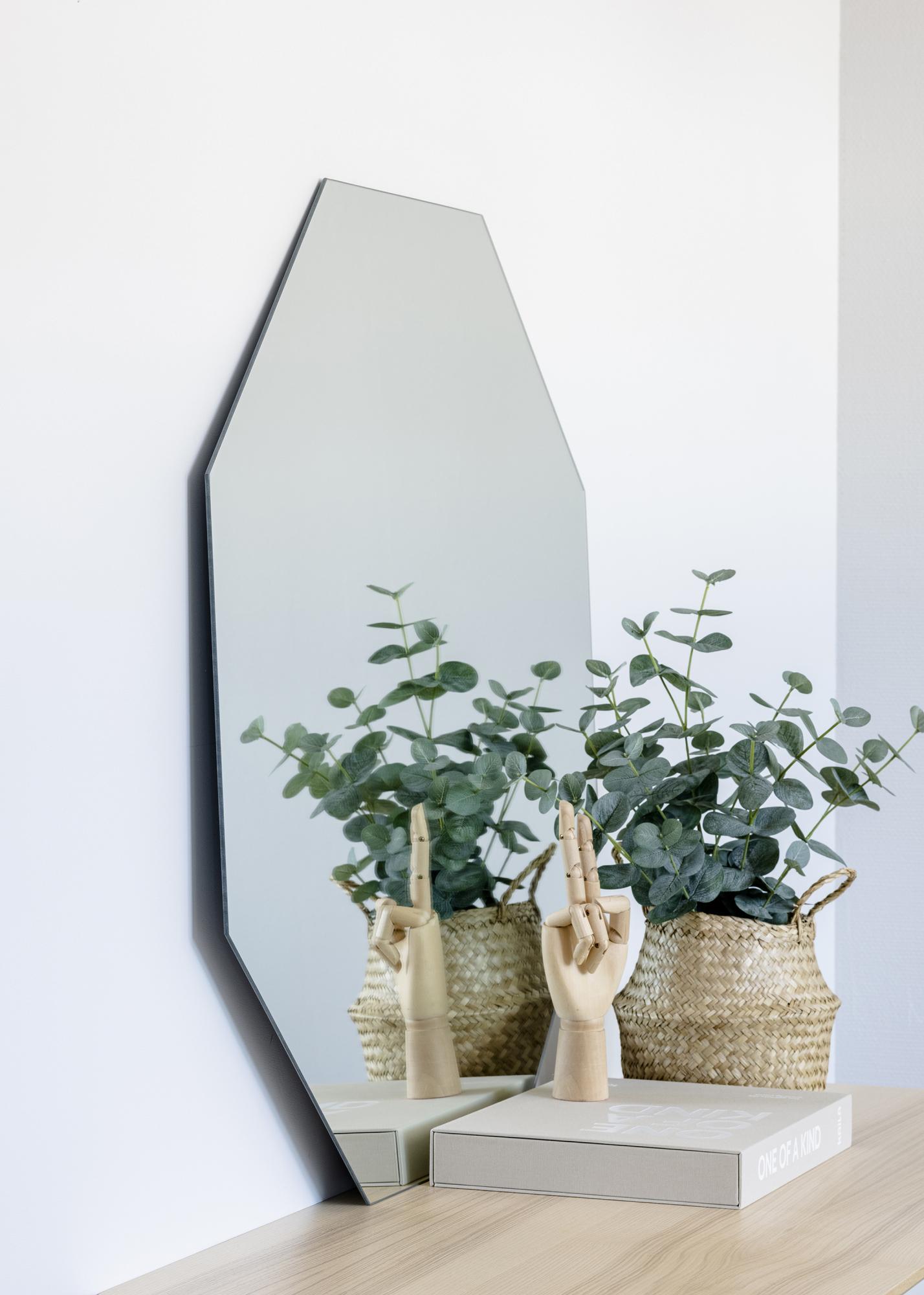 See stiilne peegel KAILA-lt on ideaalne elutuppa, esikusse või magamistuppa. Kaheksanurkne raamita kuju annab täiusliku tasakaalu minimalismi ja glamuuuri vahel. Kasutades sisustamisel erinevaid vorme ja materjale, saate luua kodus dünaamikat, ning see kandiline peegel pakub ilusat kontrasti teistele mööbliesemetele ja sisustuselementidele. Peegel on varustatud seinakinnitusega ja seda saab lihtsalt seinale riputada.