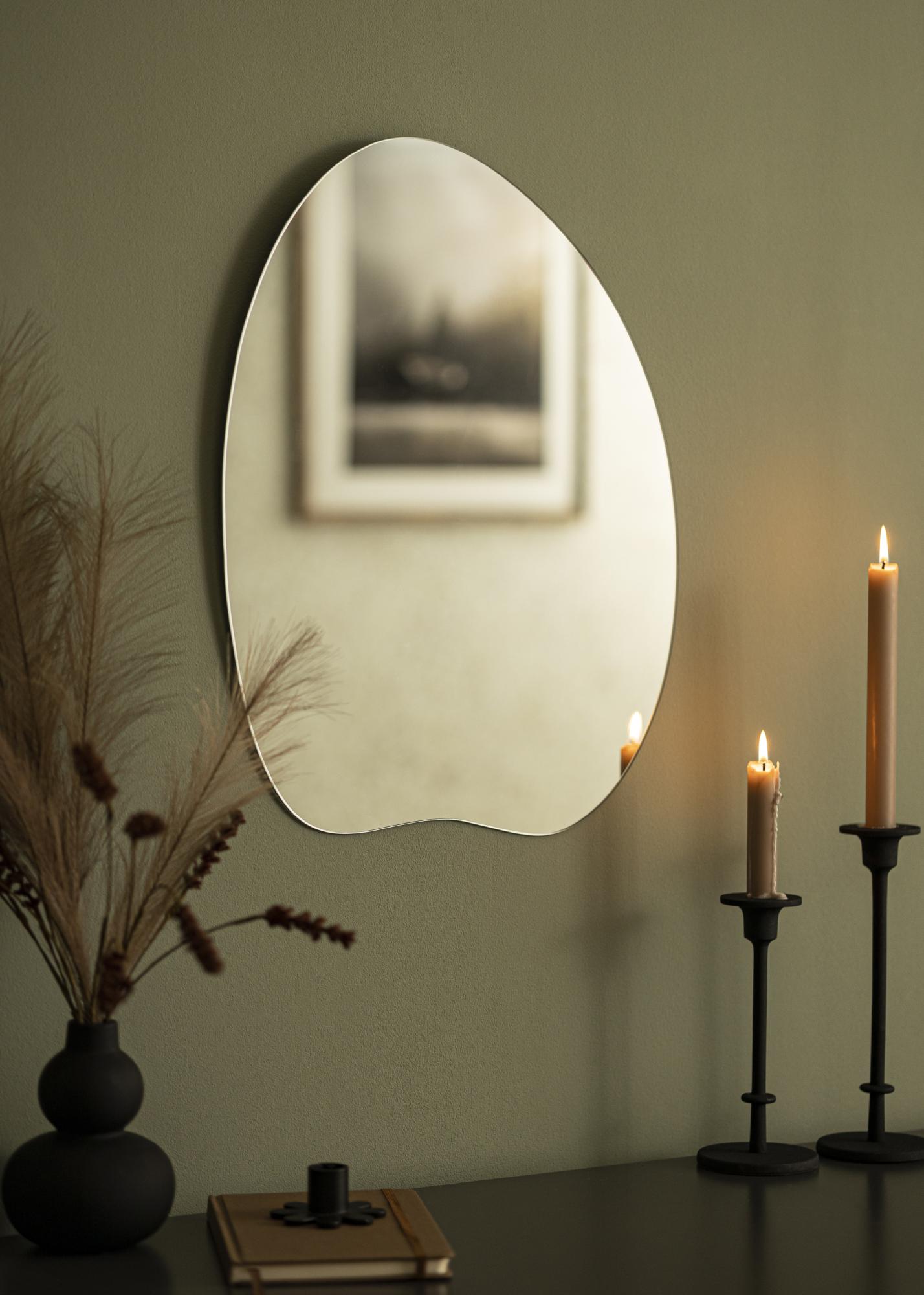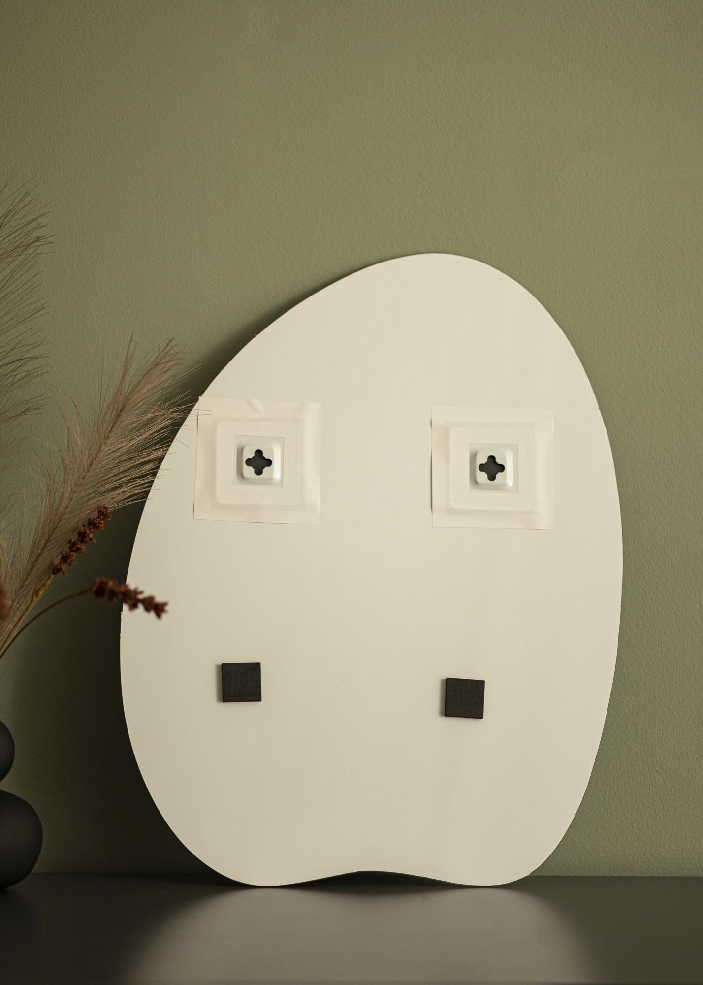 Kui otsite põneva kujuga seinale paigaldatavat peeglit, siis on see peegel teile. Ainulaadne disain, ümar kuju ja kergelt laineline alumine äär kombineeritakse ideaalselt 4 mm õhuke peegelklaasiga. Peeglil puudub raam, mis annab minimalistliku välimuse. Tänu nutikatele seina kinnitustele tagaosas saate peegli lihtsalt püstises asendis seinale riputada.