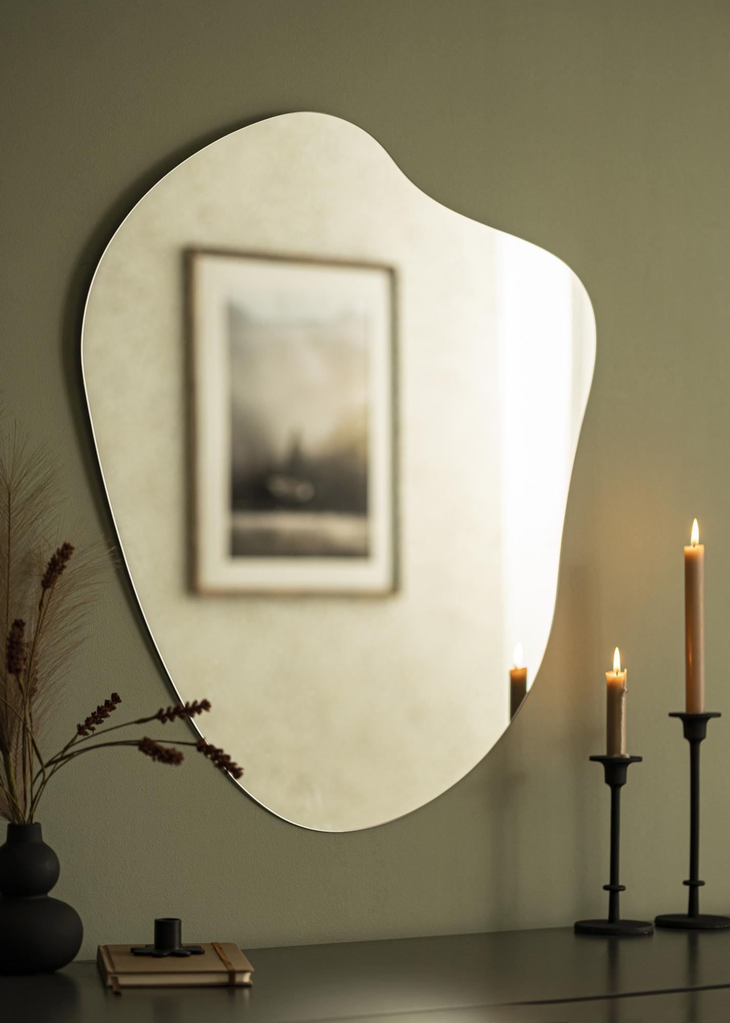 Las see trendikas seinapeegel olla põnev sisekujunduselement, mis kaunilt peegeldab akendest ja lampidest tulevat valgust. Unikaalne kuju ja raami puudumine annavad peeglile selle iseloomuliku välimuse, mis on nii moodne kui ka minimalistlik.