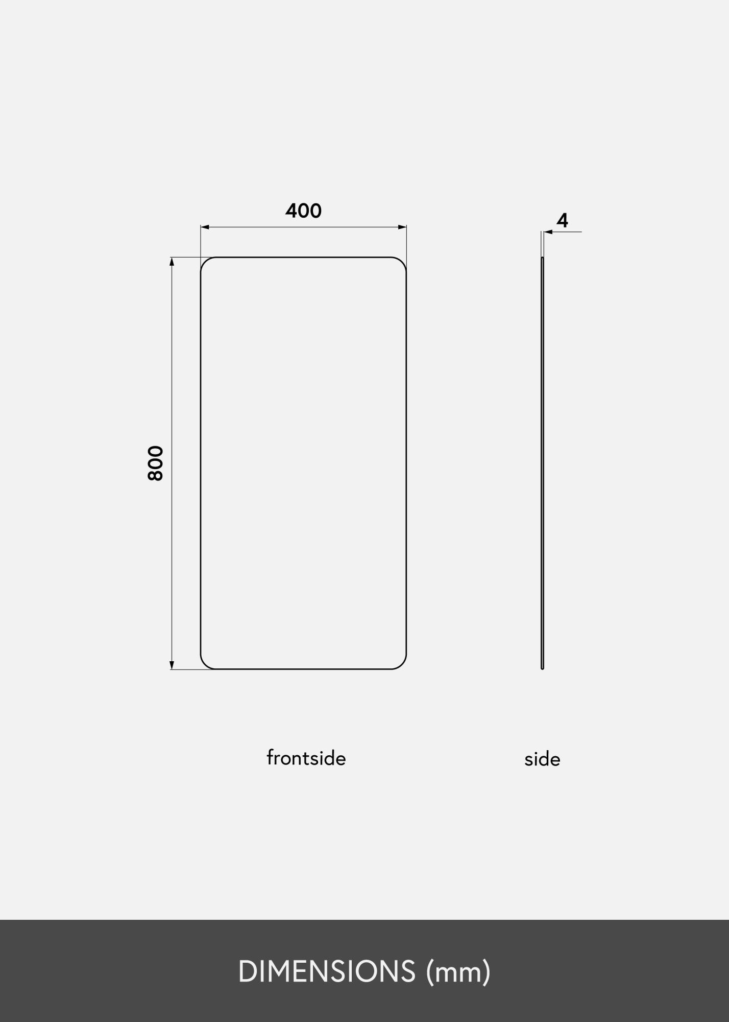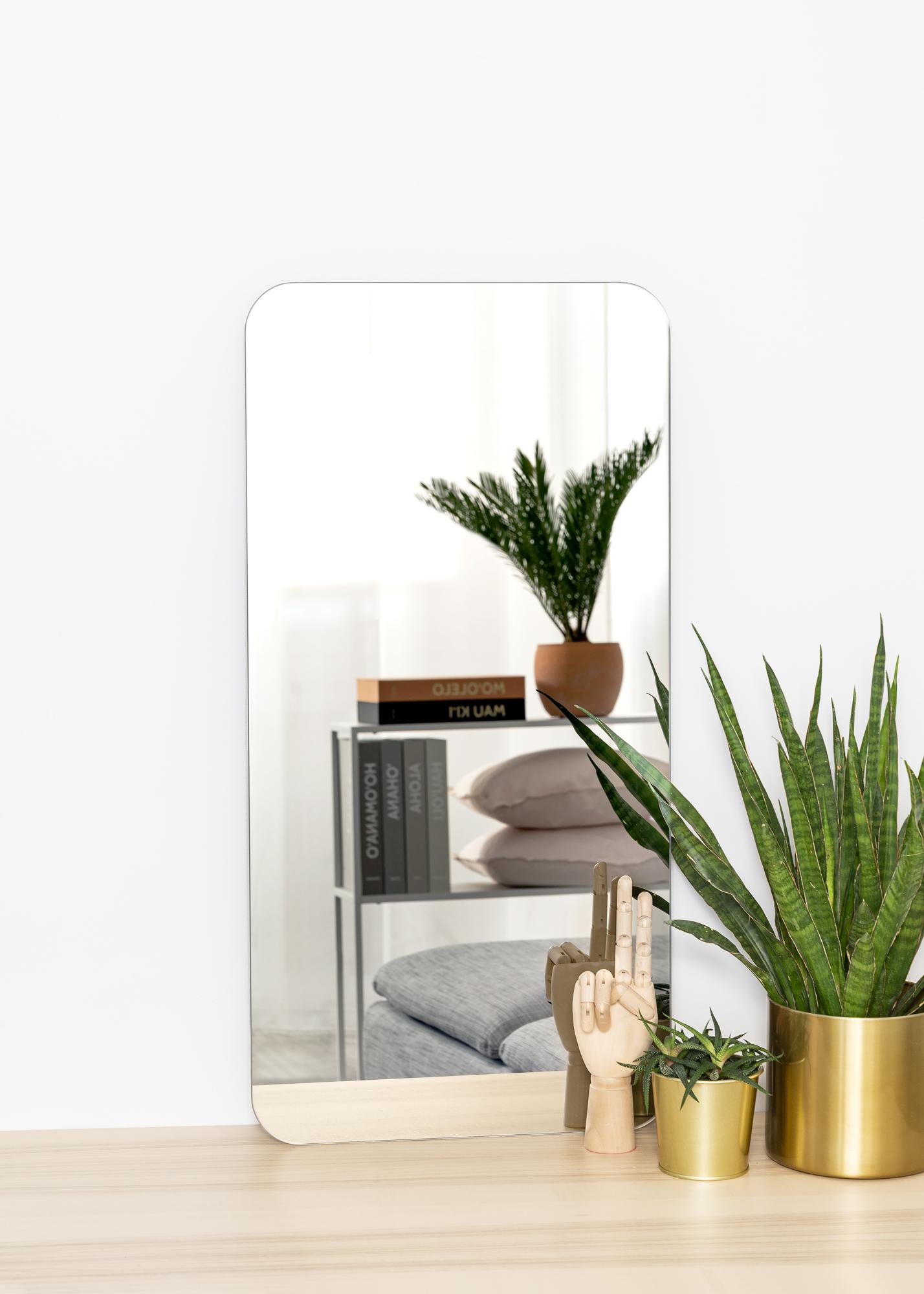 See on ristkülikukujuline peegel, millel on väike ekstra: ümarad nurgad, mis lisavad tervikule pehmuse ja elegantsi. Peegel on lisaks väga õhuke ja raamita, mis annab sellele minimalistliku tunde.