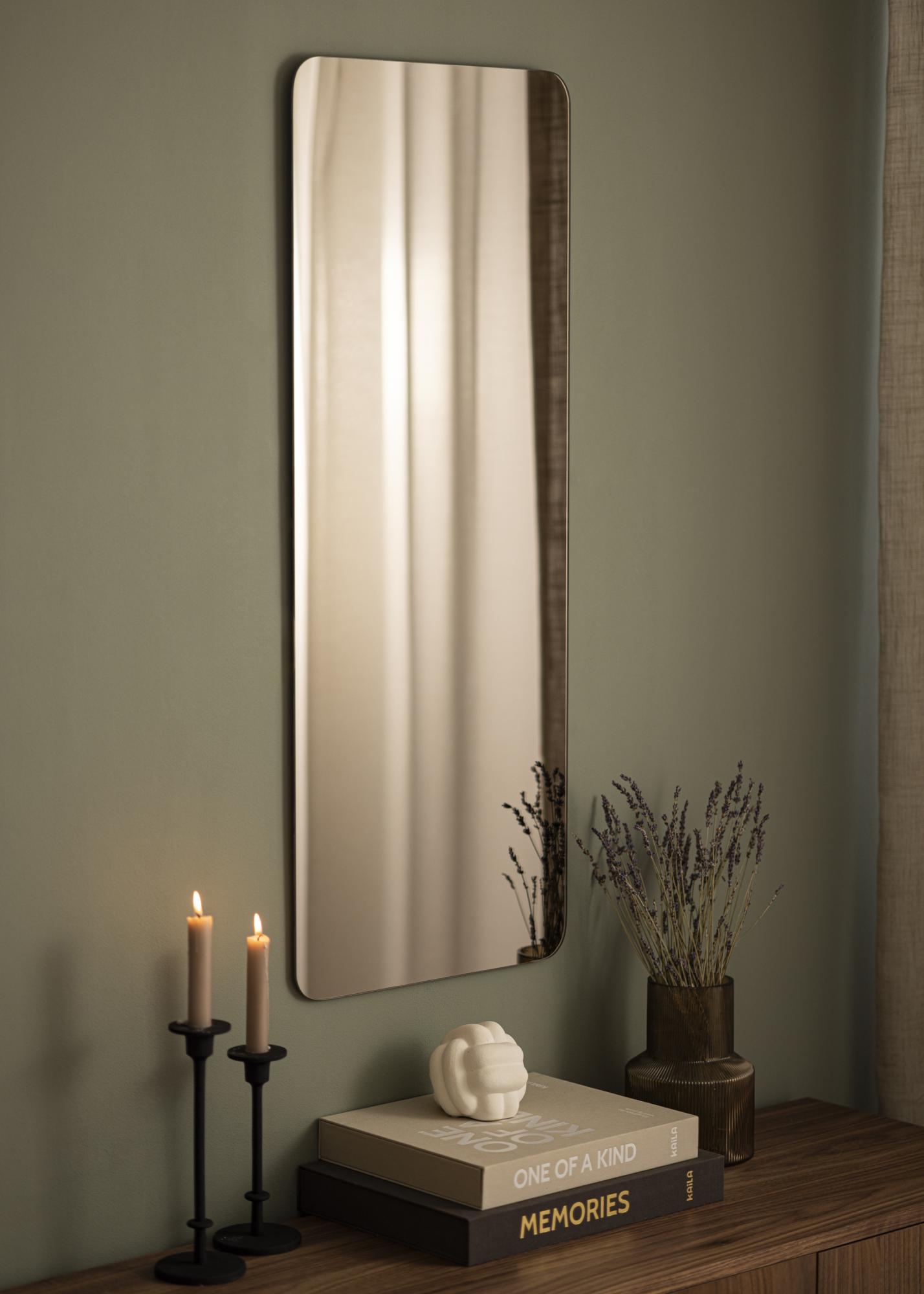 See on dekoratiivsete ümarate nurkadega ristkülikukujuline peegel, mis annab sellele pehme ja elegantse välimuse. Peegliklaas on toonitud tumeda pronksi stiilses varjundis, muutes selle peegli efektseks ja trendikaks sisustuselemendiks teie kodus. Peegel on lisaks väga õhuke ja raamita, mis veelgi rõhutab selle õhulist ja stiilset tunnetust.