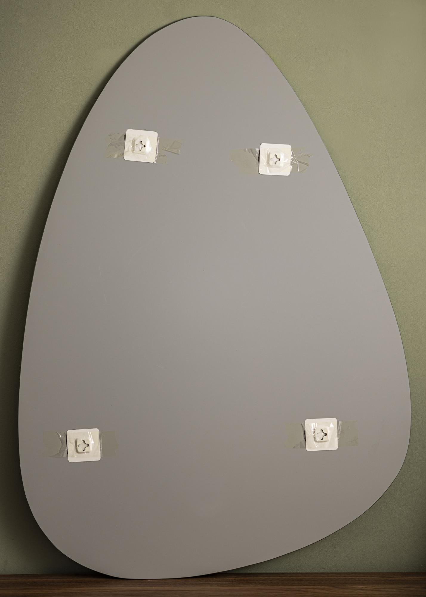 See peegel on trendika ja asümmeetrilise kujuga – peaaegu nagu muna. Pehme ja elegantne vorm, mis loob kergemeelse ja kutsuva atmosfääri ruumis, kus see asub. Peegel on lisaks väga õhuke, mis rõhutab selle stiilipuhtat ja peent ilmet.