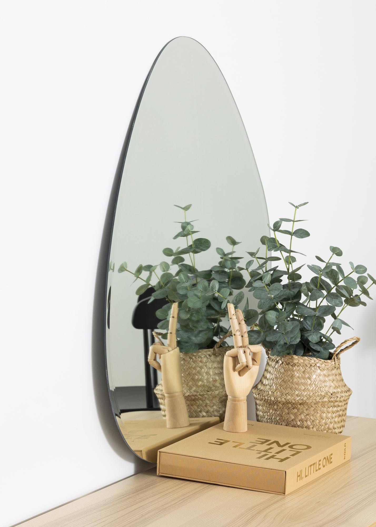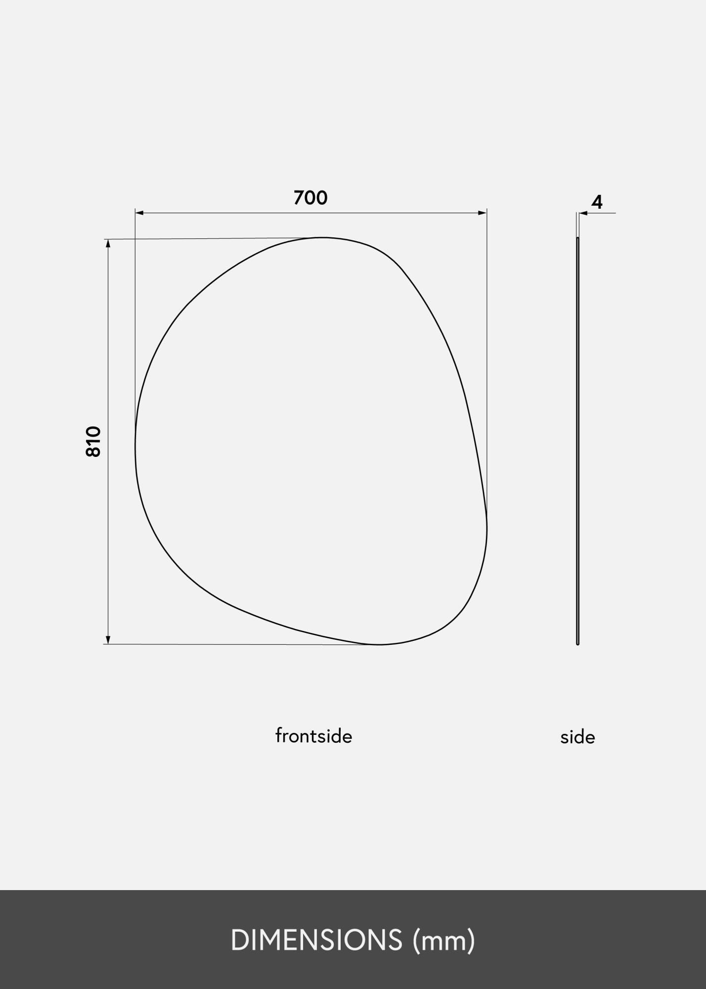See KAILA seinapeegel on elegantse asümmeetrilise kujuga, mis meenutab tilka. Peegel on väga õhuke ja raamita, mis koos luksuslikult faasitud servaga tugevdab veelgi elegantset ja kaasaegset ilmet. See on väga dekoratiivne seinapeegel, mis tõmbab pilku ükskõik millises ruumis, kuhu see paigutatakse – olgu see elutuba, esik või magamistuba. Peegel on mõõtmetega 70x81 cm.