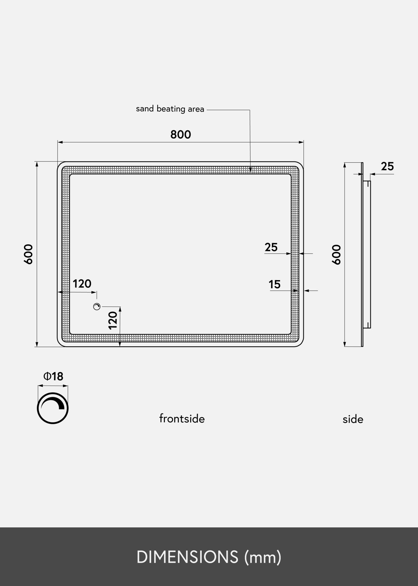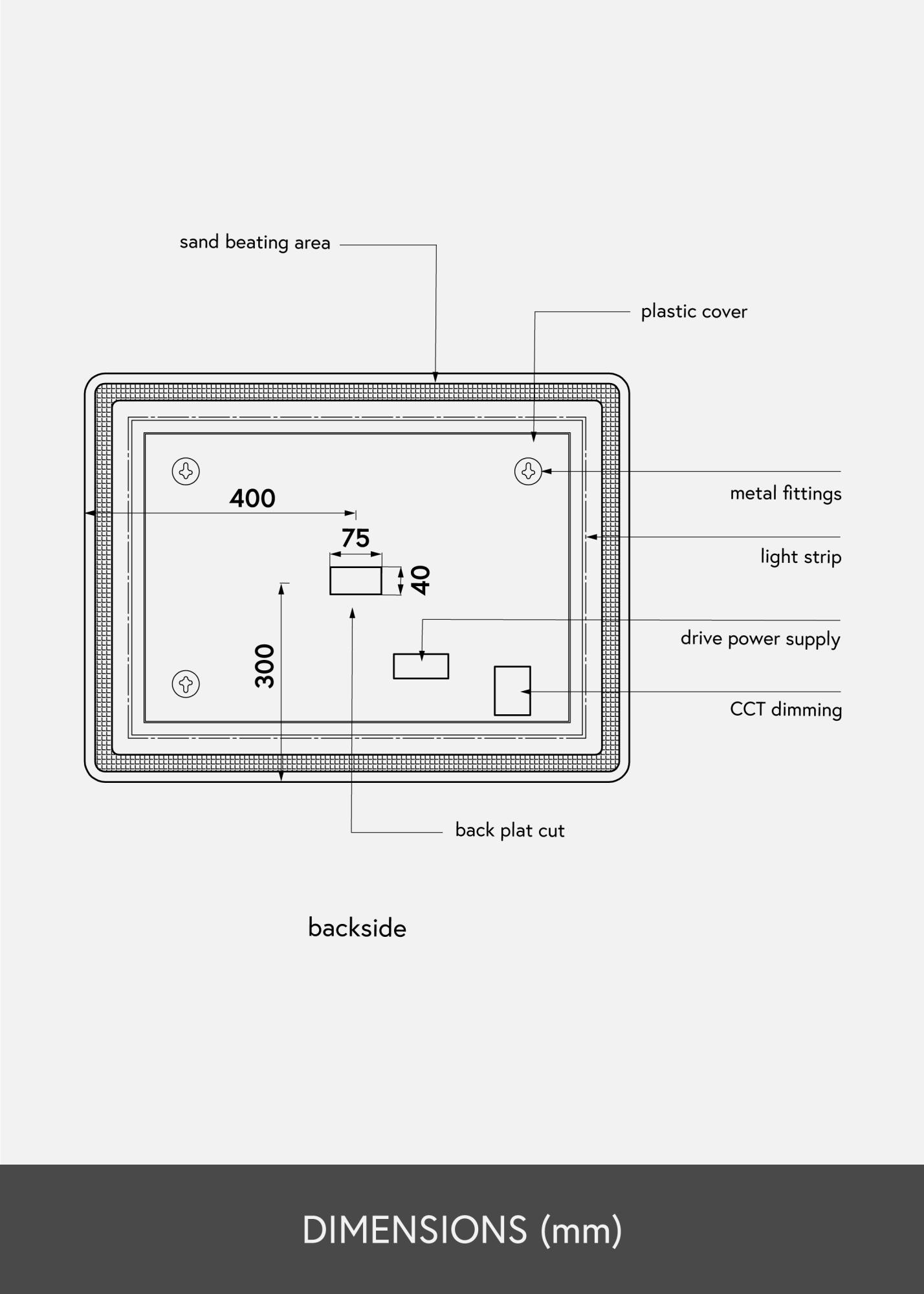 Peegel mõõdab 60x80 cm ja kaasasolevate seinakonksudega saab seda paigutada nii horisontaalselt kui ka vertikaalselt. Peegel on vannitoas kasutamiseks heaks kiidetud. Vannitoapeegel on ette nähtud püsivaks paigaldamiseks ja ühendamiseks lüliti kaudu. Peegli õigeks toimimiseks tuleks see ühendada tavalise lülitiga, mitte hämardiga.