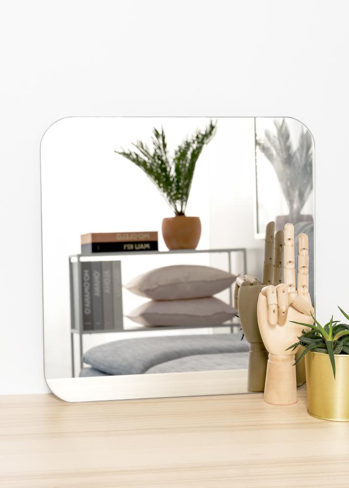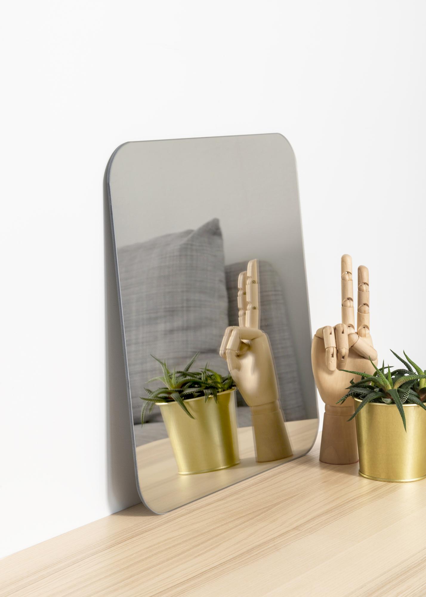See on nelinurkne peegel ümarate nurkadega, mis pehmendab välimust ja annab sellele elegantse tunde. Peegel on lisaks vaid 4 mm õhuke ja ilma raamita, mis annab sellele minimalistliku ilme ja võimaldab sellel kergesti igasse koju sobituda.