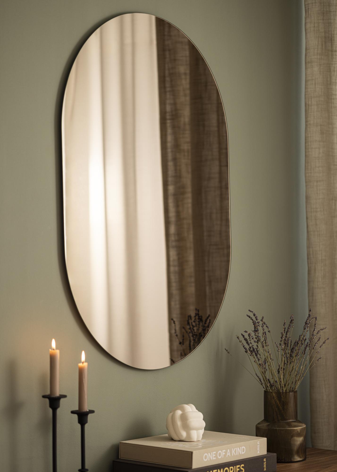 Ovaalne peegel annab sinu kodule pehme ja elegantse mulje. Just sellel ovaalsel peeglil on lisaks peegliklaas toonitud stiilse tumeda pronksitooni varjundiga. See efektne ja trendikas detail on ühendatud sale disainiga, kuna peegel on väga õhuke ja ilma raamita. Tulemus on silmatorkav, moodne ja elegantne sisustuselement, mida saab paigutada igasse ruumi, kus soovid lisada funktsionaalsust ja trendikat Rootsi disaini!