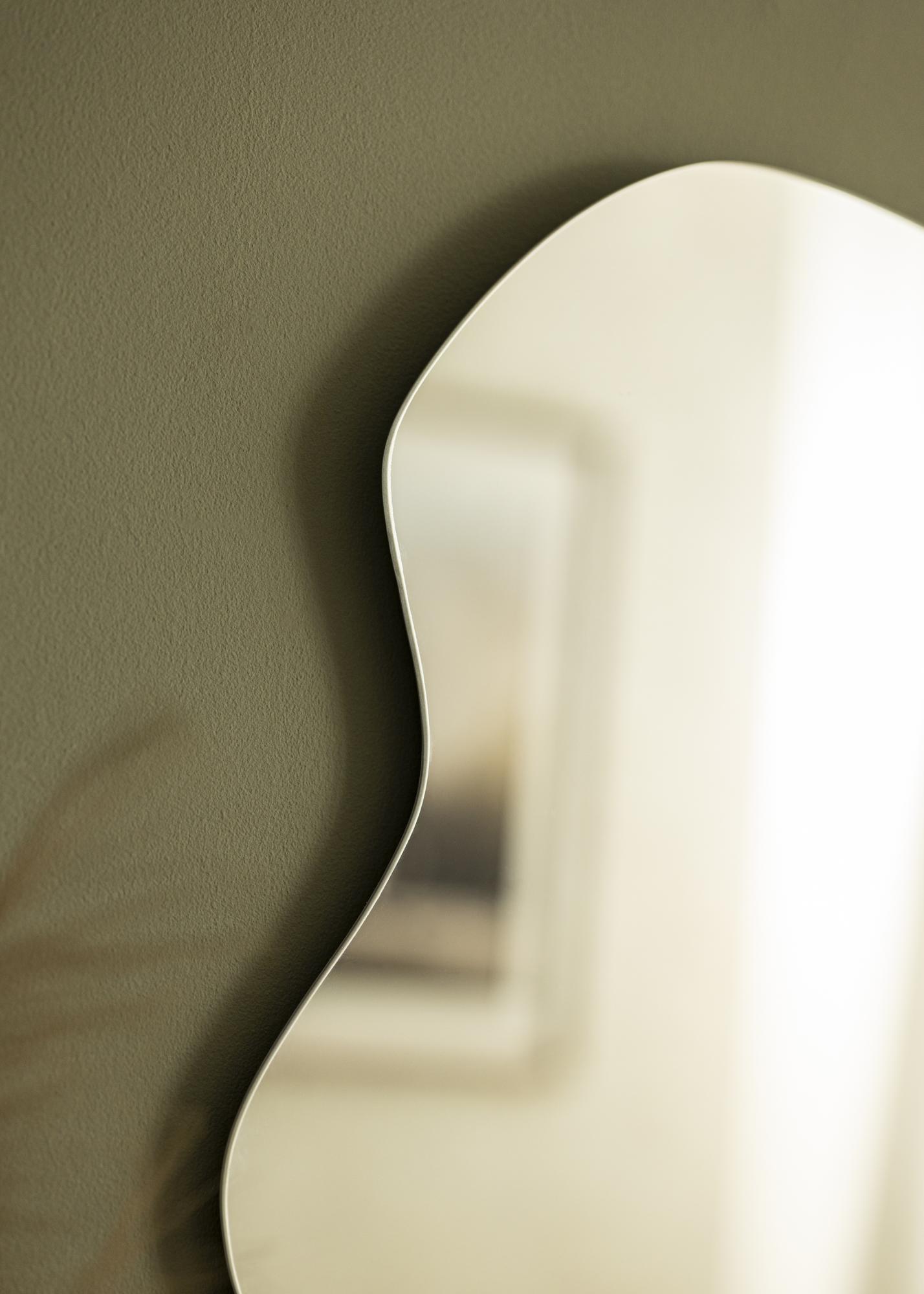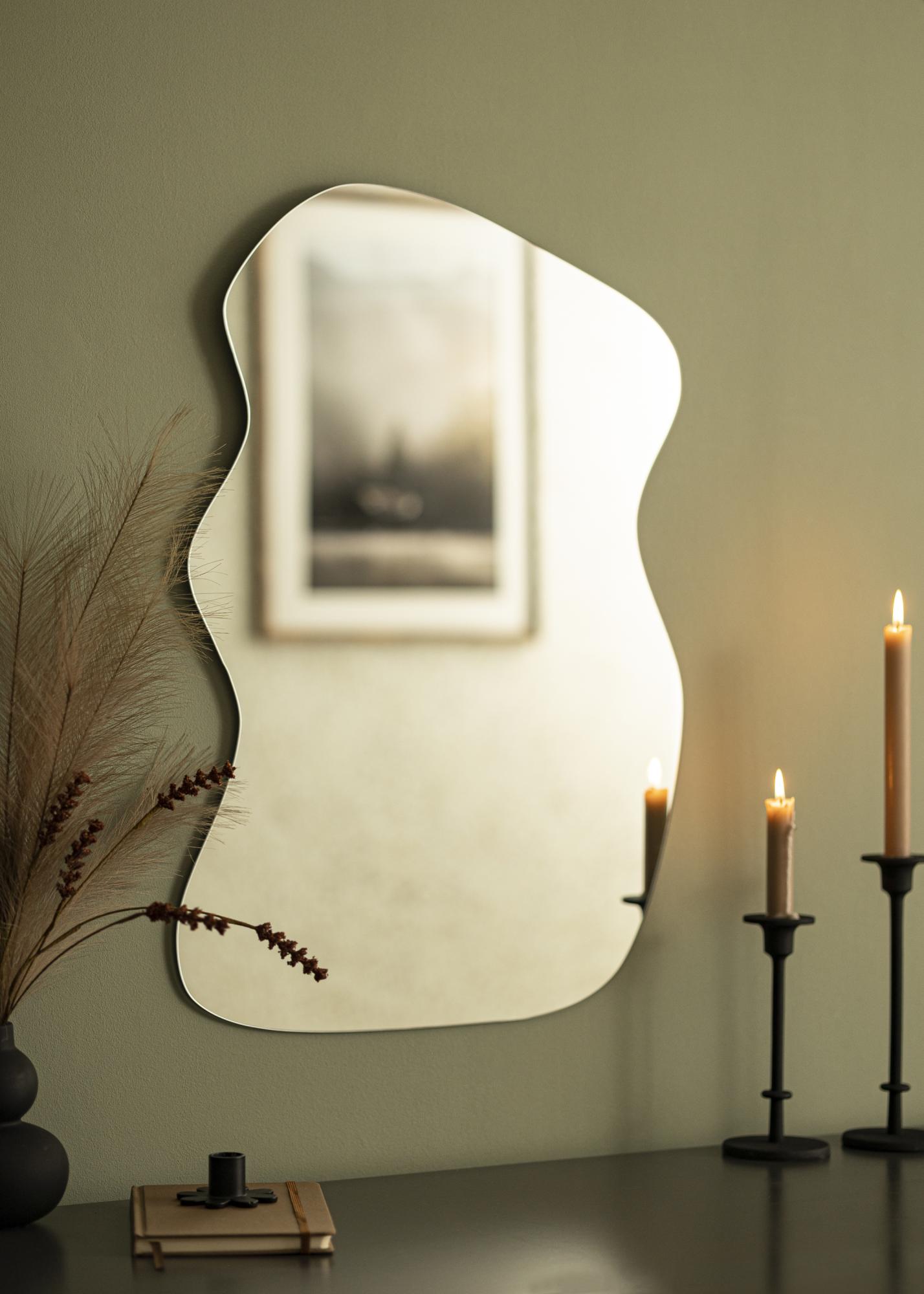 See on suurepärane seinapeegel neile, kes otsivad klassikalise elegantsi ja modernsuse täiuslikku kombinatsiooni. Kergelt laineline vorm annab peeglile ainulaadse ja trendika välimuse, samas kui raami puudumine lisab elegantsi.