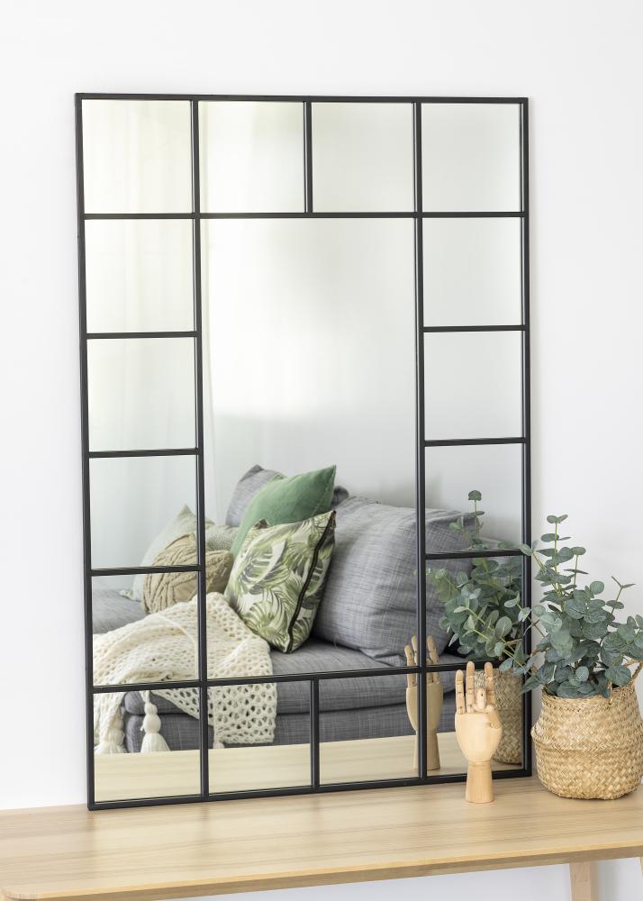 See stiilne peegel KAILA-lt meenutab kaunist akent. Peeglil on mitu erinevat ruutu, mis kaunilt raamivad suurema peegelpinna keskel. Ruudud on kaunilt raamitud õhukeste mustade metalljoontega, mis annavad peeglile veidi industriaalset, kuid samas elegantset iseloomu. Seinakinnitus seinale paigaldamiseks on olemas, kuid peeglit saab ka stiilselt vastu seina toetada. Peegel mõõtmetega 80x120 cm.