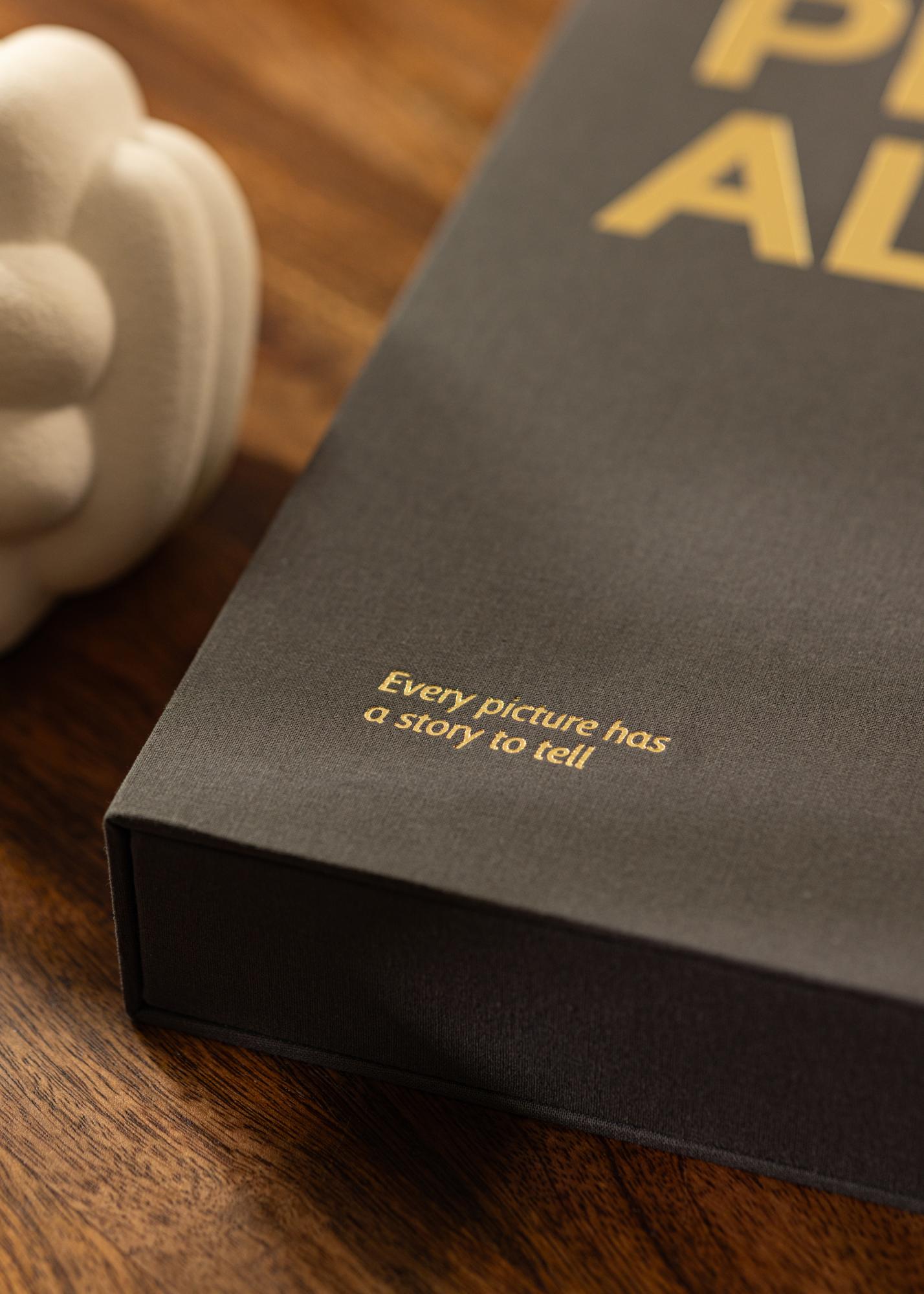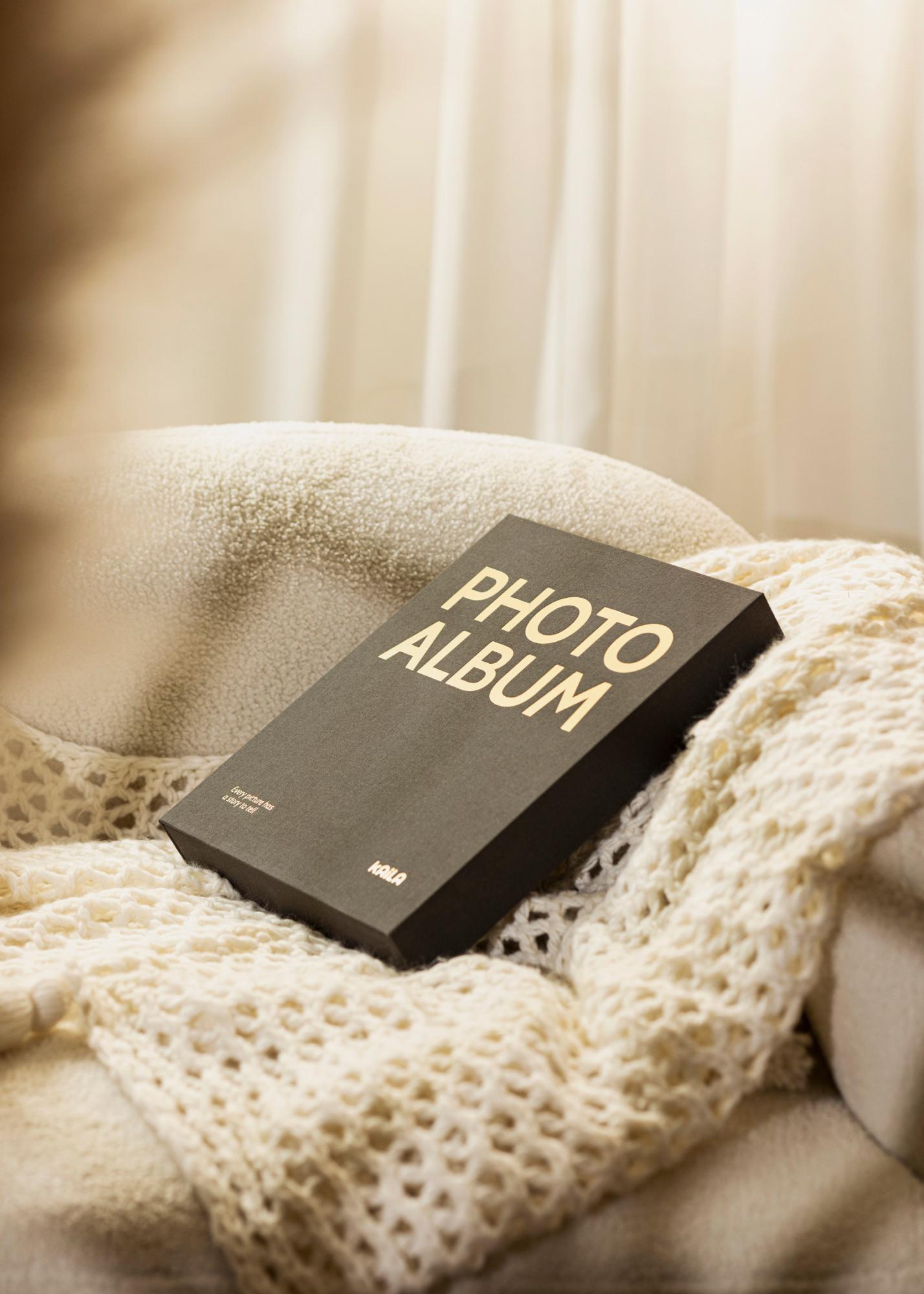 See on fotoalbum sulle, kes otsib albumit, mis mahutab su parimad fotomälestused ja mis samal ajal on ilus, et seda välja jätta. Album on kujundatud nagu kohvilauaraamat, kaasaegse disainiga, mis on loomulik dekoratsioon elutoalaual või raamaturiiulis. See on kujundatud nagu eksklusiivne karp, stiilse musta tekstiiliga kaanega. Kui avad albumi, kohtad rõngasmapi 60 musta albumilehega (30 lehte), kuhu saad kleepida fotosid ilusatest hetkedest. Sa kleepid pildid täpselt sinna, kuhu soovid.