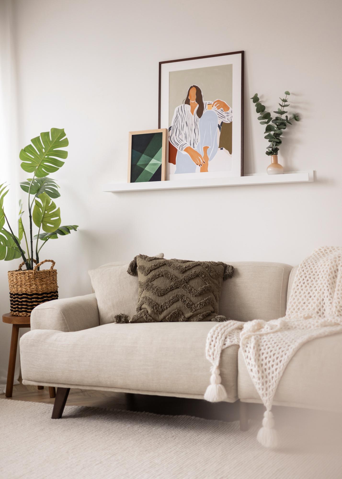 Praktilise pildiriiuli abil saad oma pilte lihtsalt ja kaunilt eksponeerida ning vaheldust luua! See elegantne pildiriiul on valmistatud MDF-ist ja värvitud valgeks kauni, poolläikiva pinnaga. Disain on stiilipuhas, lihtsate sirgete joonte ja ajatult minimalistliku tunnetusega. Riiulitasapinna keskel jookseb läbi sisselõigatud soone, mis toetab sinu pilte ja annab neile täiusliku nurga, seistes toetudes vastu seina. Pildiriiulil on ka eelpuuritud augud ning pakend sisaldab sobivaid kruvisid ja tüübleid, et muudab paigaldamise veelgi lihtsamaks!